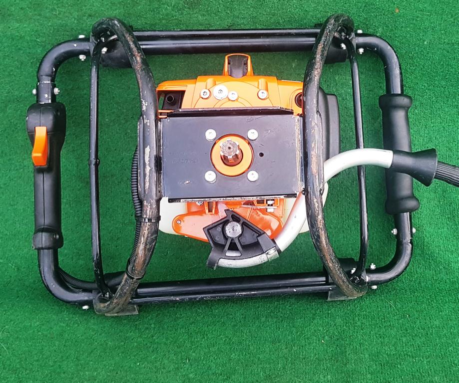 Vibrationsgedämpfter Griffrahmen: Der vibrationsgedämpfte Griffrahmen mit vier Vibrationselementen ermöglicht ein komfortables, ermüdungsarmes Arbeiten bei Pflanzungen und Bohrungen. Der Motor liegt hierbei separat vom Griffrahmen. Erleichtert besonders bei Langzeiteinsätzen die Arbeit.