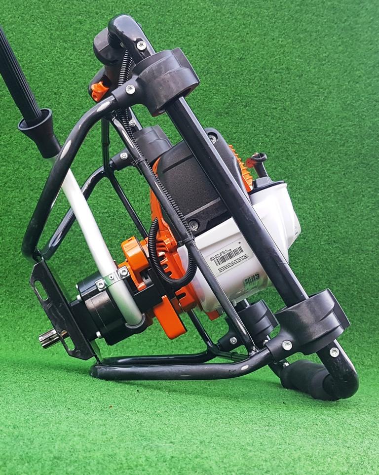 Der Griffrahmen sorgt für eine deutliche Reduktion der Vibrationen. Dies ermöglicht ein besonders kräfteschonendes Arbeiten, vor allem bei längeren Einsätzen für großflächige Pflanzungen und Erdbohrarbeiten.