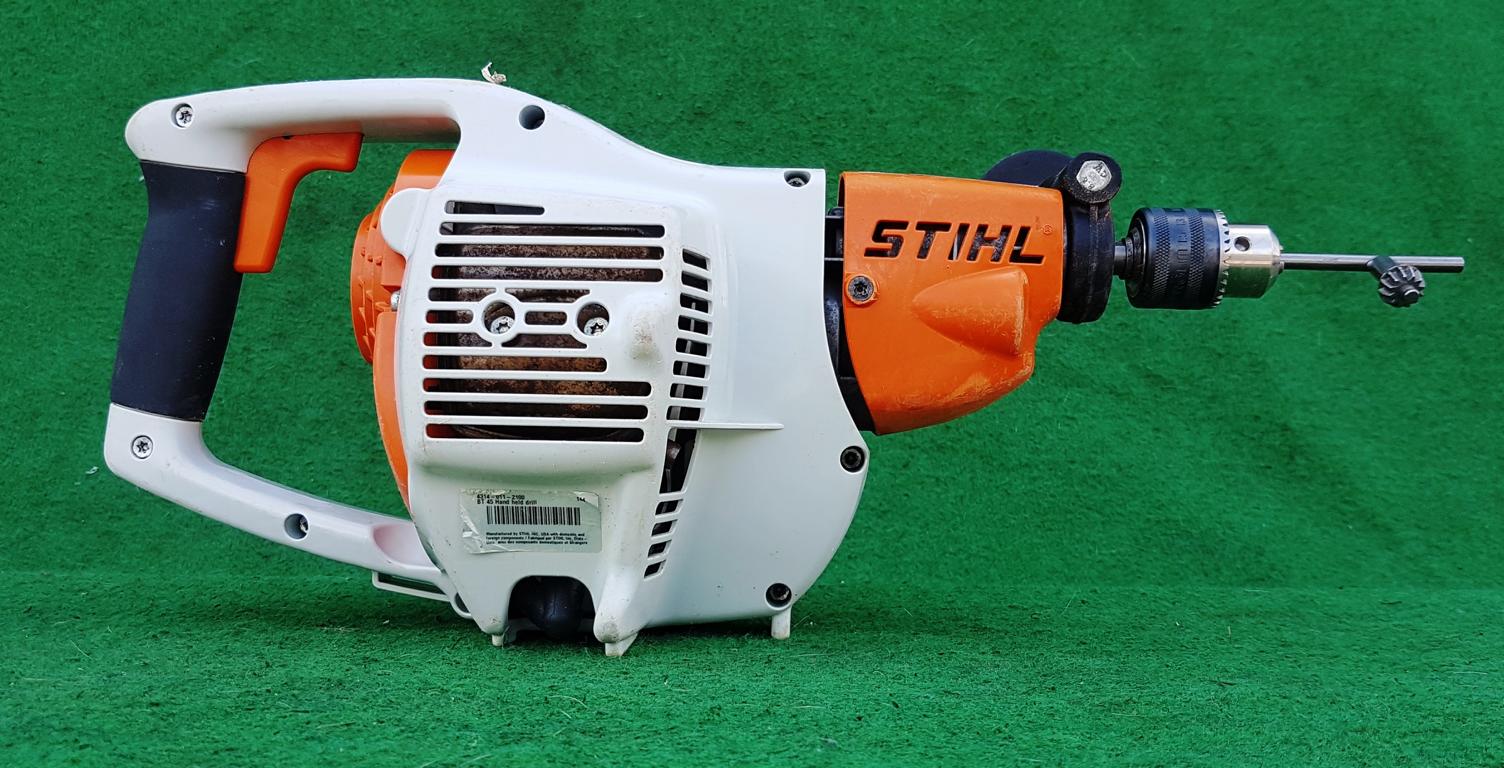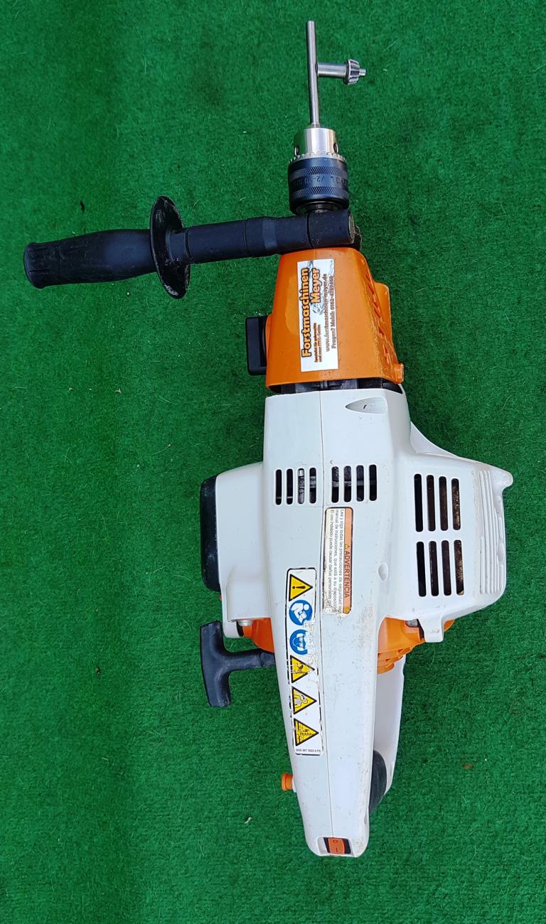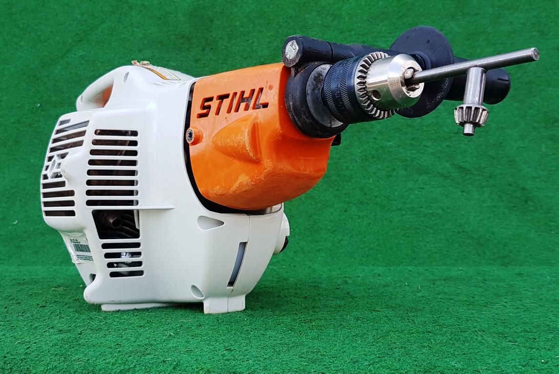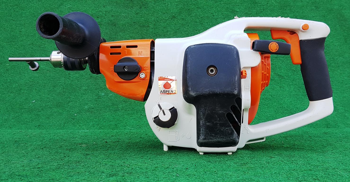 Handbohrmaschine mit starkem Benzinmotor. Mit Schnellspannfutter, Zweiganggetriebe und Rückwärtsgang zum Lösen festsitzender Bohrer. Komfortables Starten ohne drehendes Werkzeug in Leerlaufstellung.
