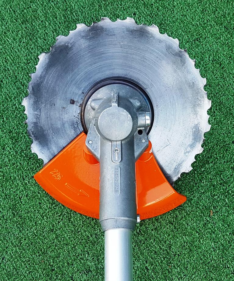Auf wunsch kann der Mähkopf kostenlos gegen Häckselmesser, Kreissägeblatt oder Dickichtmesser