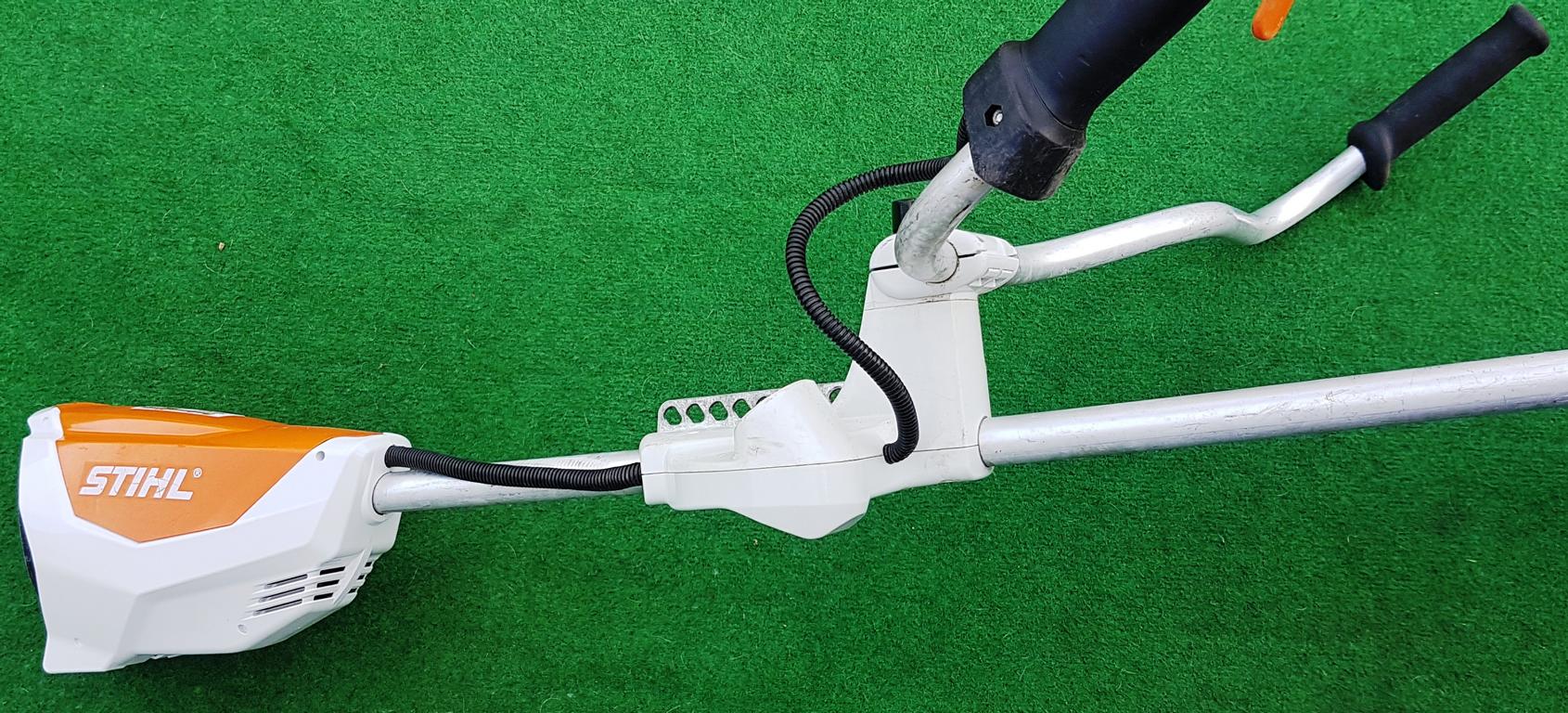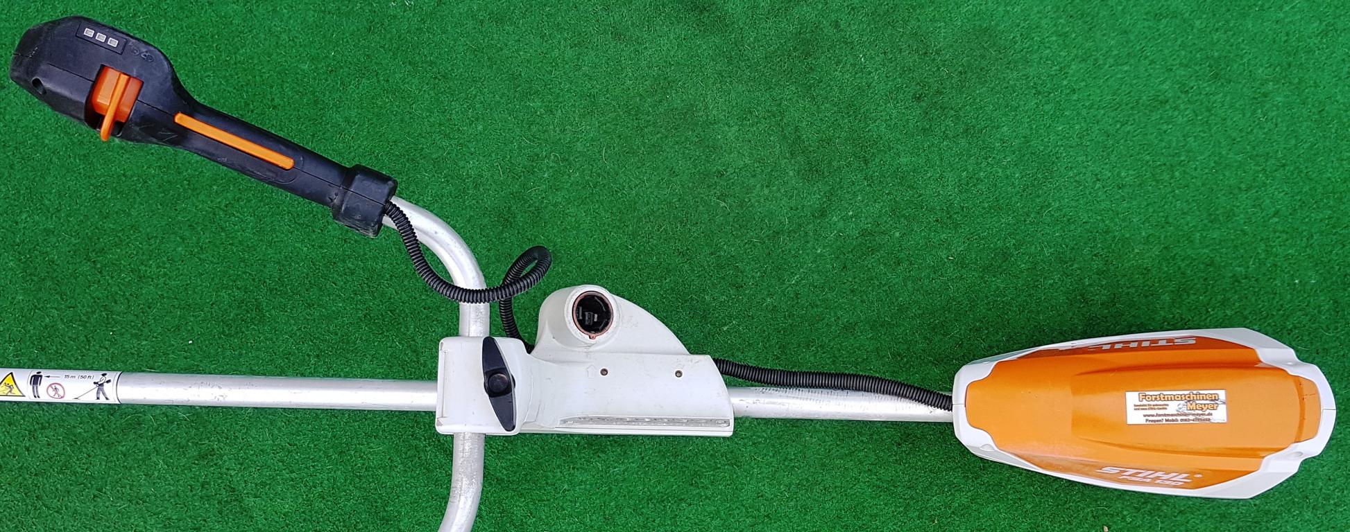 Leistungsstarke und leichte Akku-Motorsense für Flächenarbeiten in zähem Gras. Schneidkreis-Durchmesser 260 mm mit Grasschneideblatt, drei Leistungsstufen einstellbar. Einhängevorrichtung zum Tragen des Gerätes mit rückentragbarem Akku AR oder Tragsystem AP.