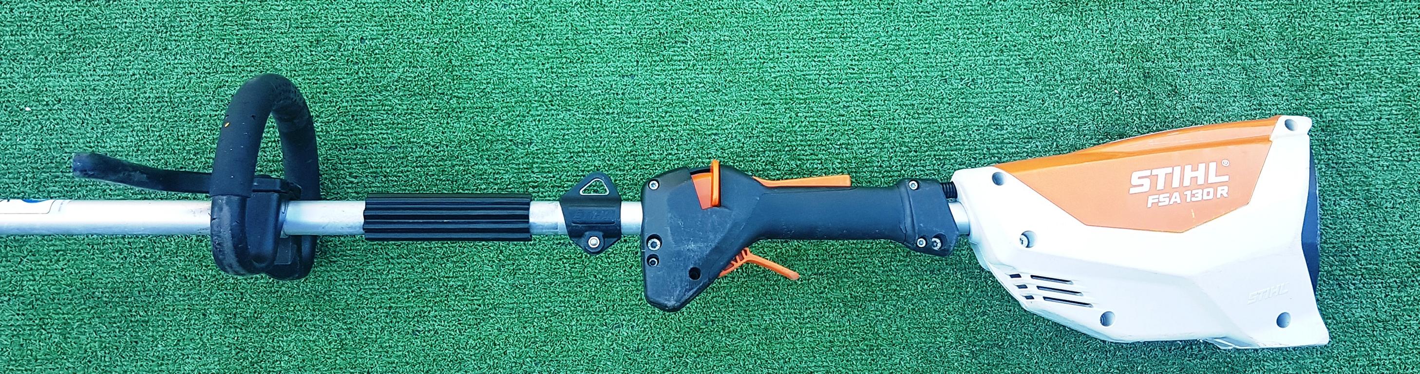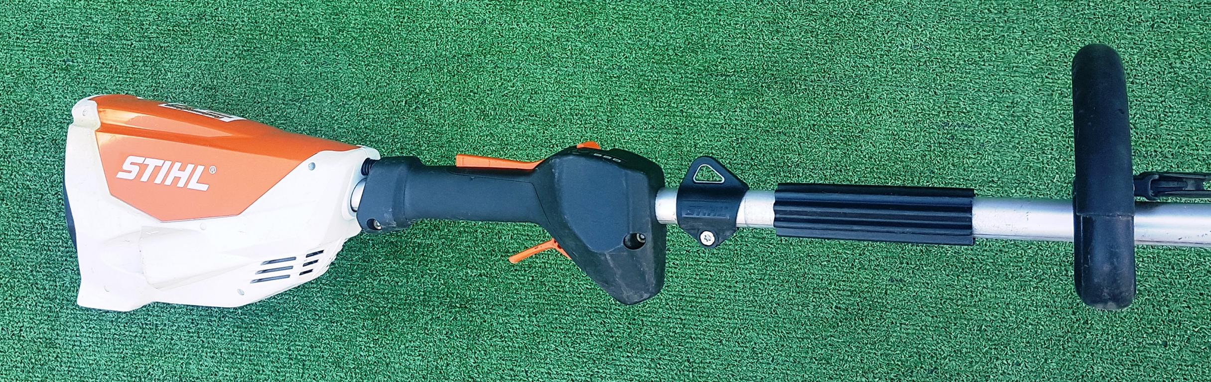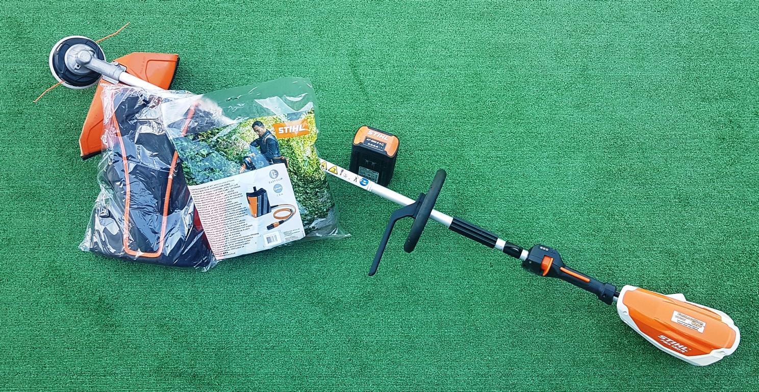 Leistungsstarke und leichte Akku-Motorsense für Flächenarbeiten in zähem Gras. Schneidkreis-Durchmesser 260 mm mit Grasschneideblatt, drei Leistungsstufen einstellbar. Einhängevorrichtung zum Tragen des Gerätes mit rückentragbarem Akku AR oder Tragsystem AP.