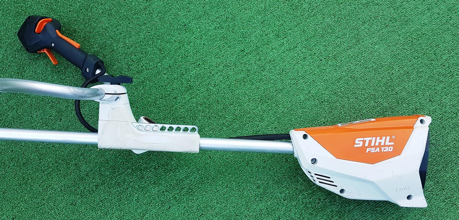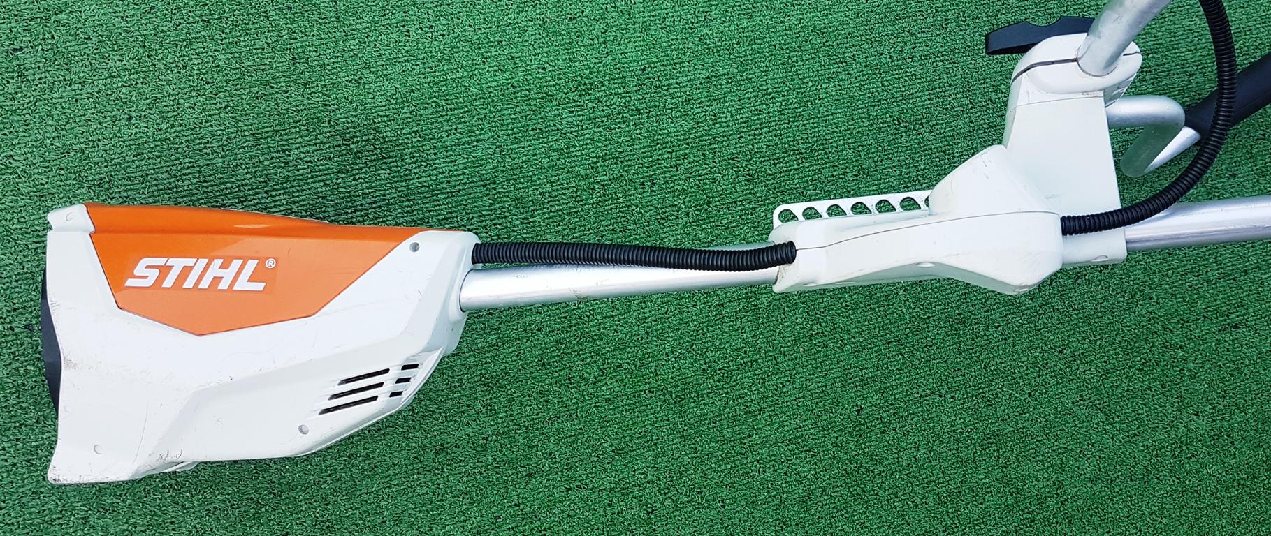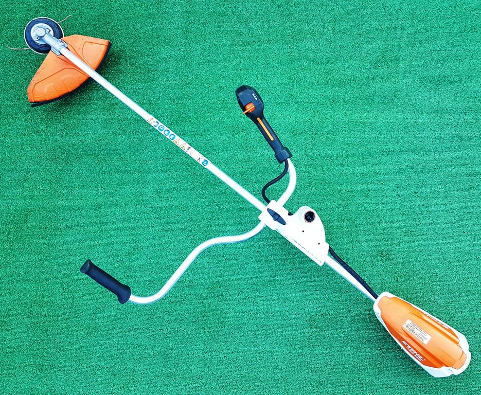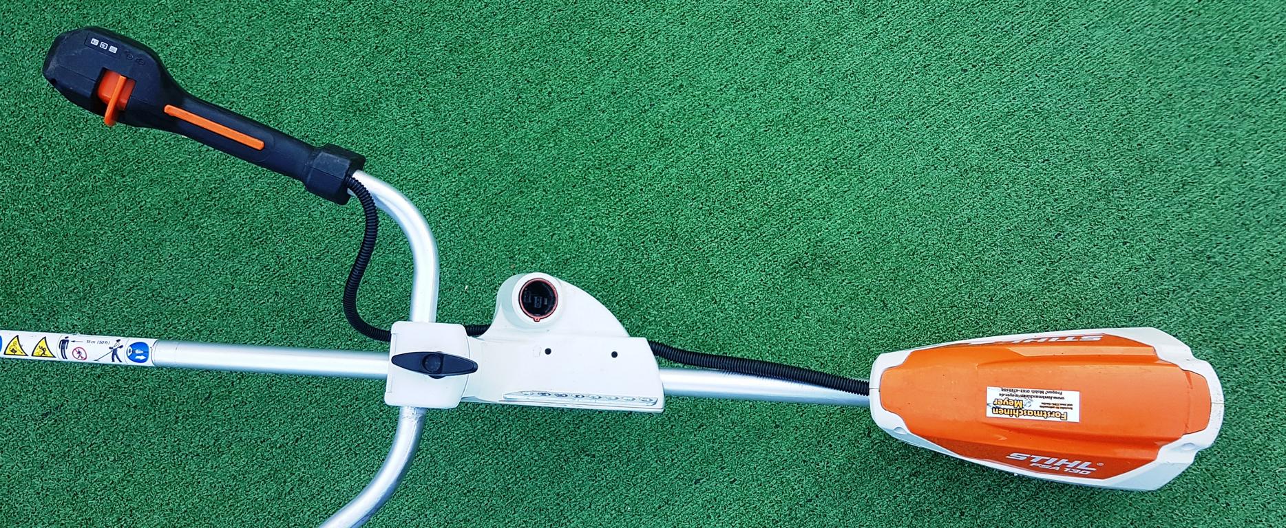 Leistungsstarke und leichte Akku-Motorsense für Flächenarbeiten in zähem Gras. Schneidkreis-Durchmesser 260 mm mit Grasschneideblatt, drei Leistungsstufen einstellbar. Einhängevorrichtung zum Tragen des Gerätes mit rückentragbarem Akku AR oder Tragsystem AP.