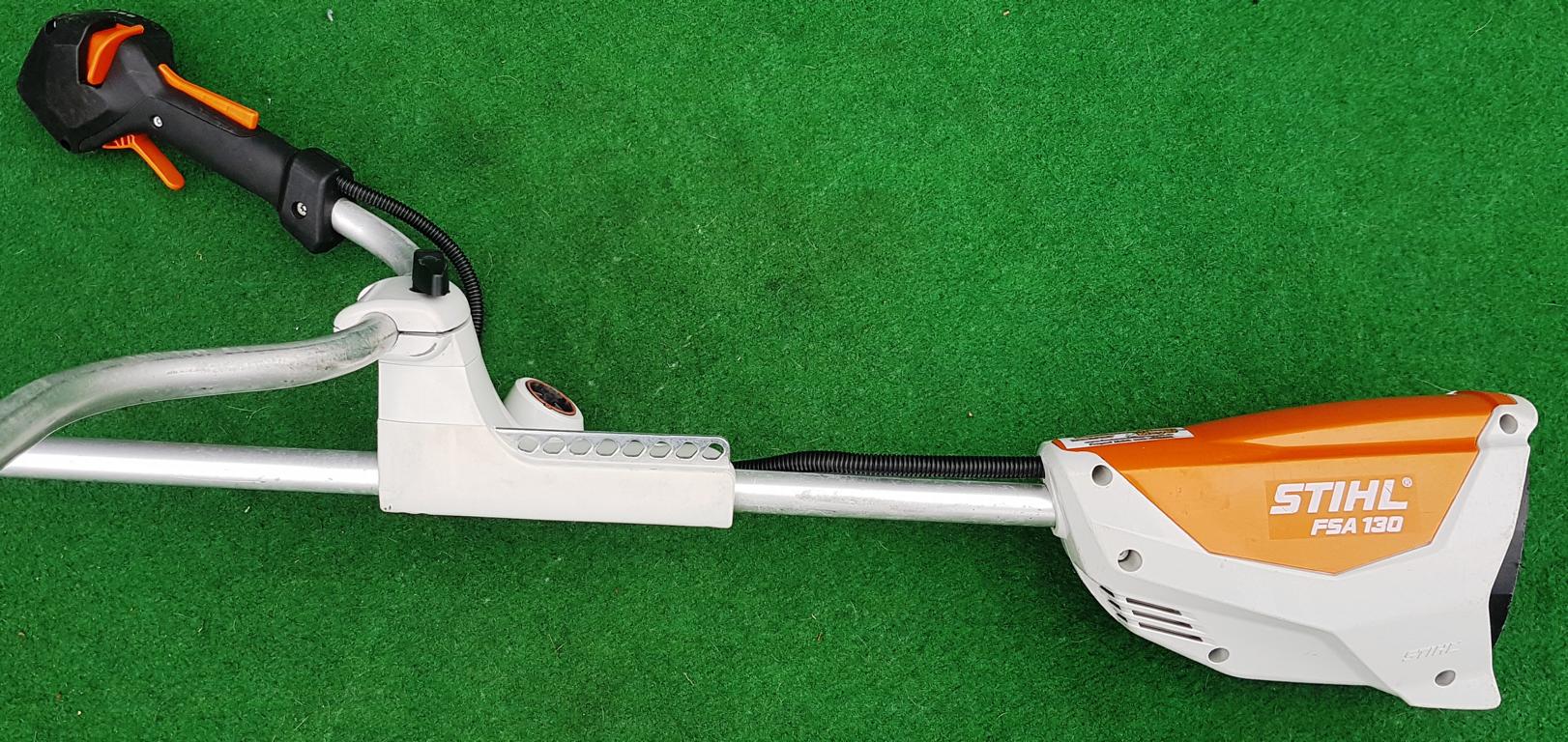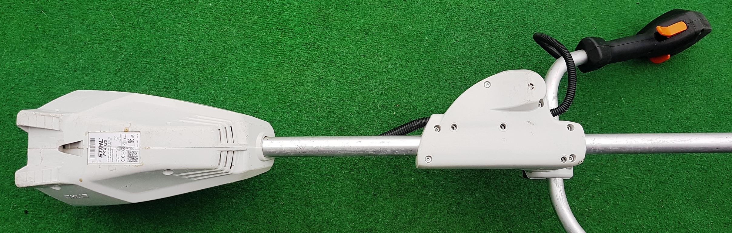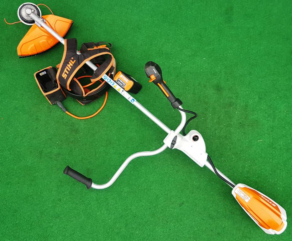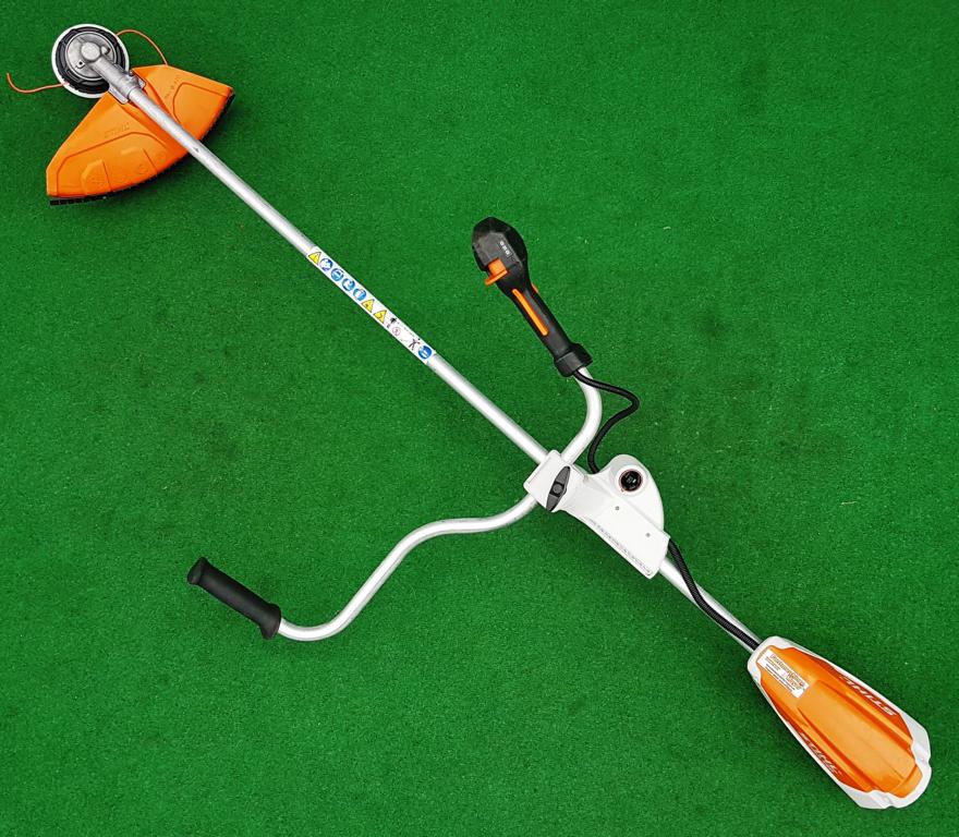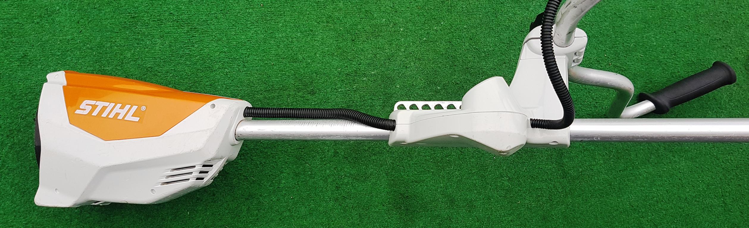 Leistungsstarke und leichte Akku-Motorsense für Flächenarbeiten in zähem Gras. Schneidkreis-Durchmesser 260 mm mit Grasschneideblatt, drei Leistungsstufen einstellbar. Einhängevorrichtung zum Tragen des Gerätes mit rückentragbarem Akku AR oder Tragsystem AP.