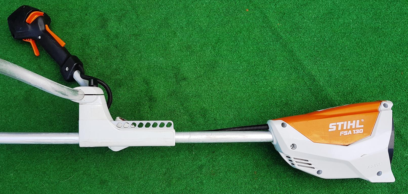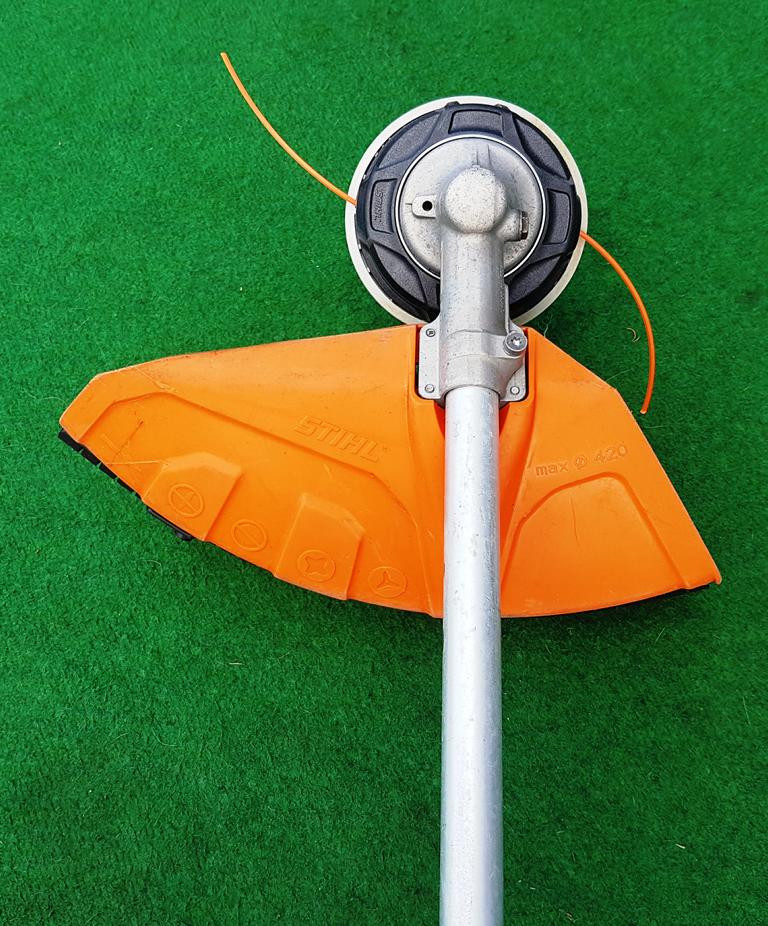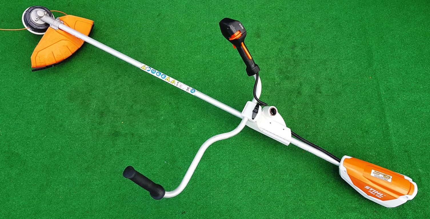 Leistungsstarke und leichte Akku-Motorsense für Flächenarbeiten in zähem Gras. Schneidkreis-Durchmesser 260 mm mit Grasschneideblatt, drei Leistungsstufen einstellbar. Einhängevorrichtung zum Tragen des Gerätes mit rückentragbarem Akku AR oder Tragsystem AP.