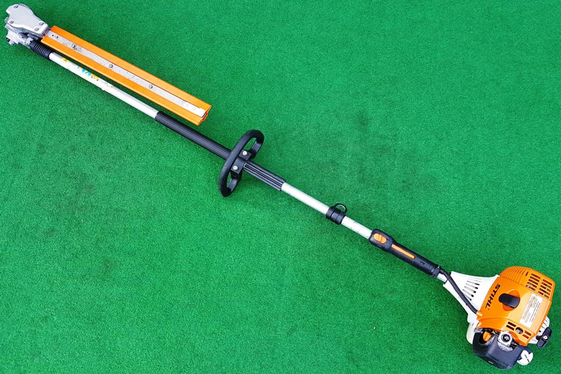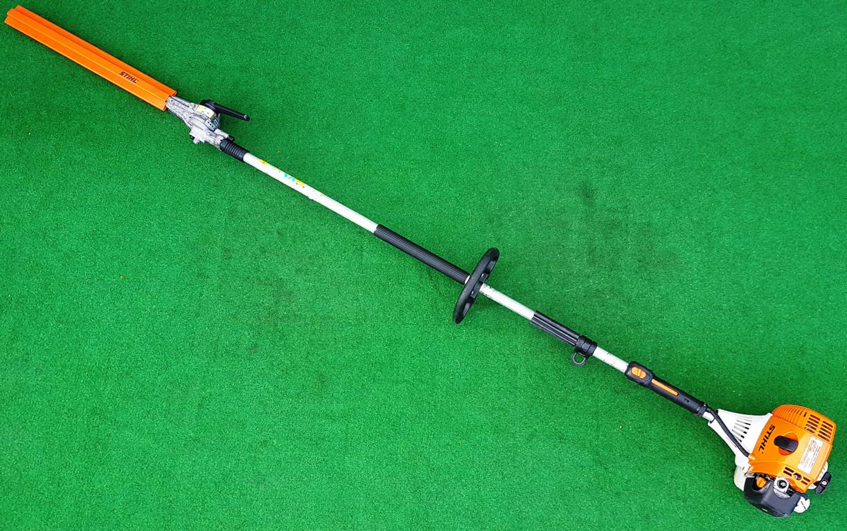 Starker Heckenschneider in der Langversion mit umweltschonendem 4-MIX®-Motor und 135° stufenweise verstellbarem Messerbalken. Tankt Benzin-Öl-Gemisch. Angenehmes Klangbild. Flexibles Schneiden sehr hoher und überbreiter Hecken mit sicherem Stand vom Boden aus auch ohne Gerüst oder Arbeitsplattformen. Gesamtlänge 2,5 m.