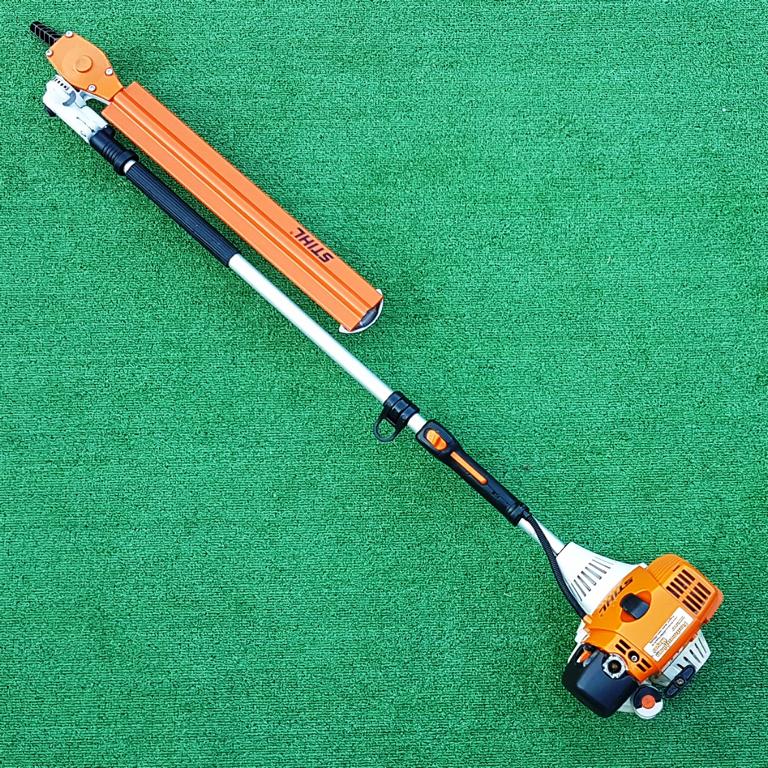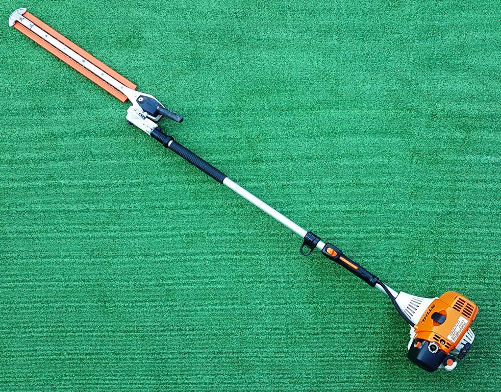 Starker Heckenschneider in der Langversion mit umweltschonendem 4-MIX®-Motor und 135° stufenweise verstellbarem Messerbalken. Tankt Benzin-Öl-Gemisch. Angenehmes Klangbild. Flexibles Schneiden sehr hoher und überbreiter Hecken mit sicherem Stand vom Boden aus auch ohne Gerüst oder Arbeitsplattformen. Gesamtlänge 2,5 m.