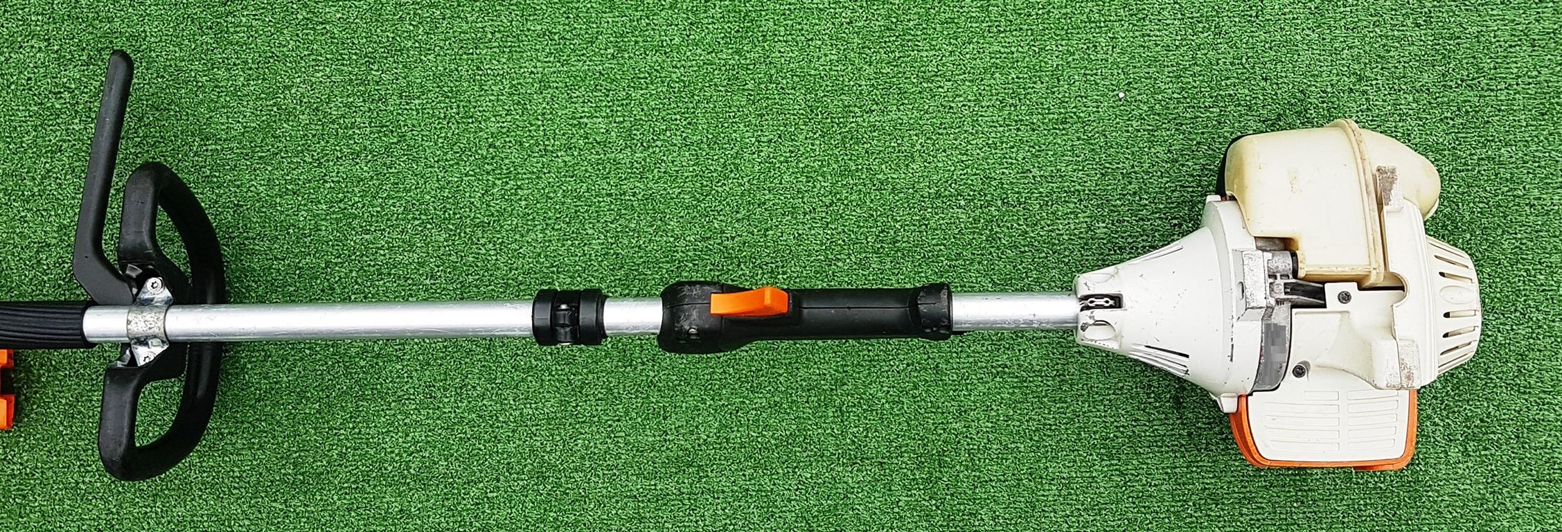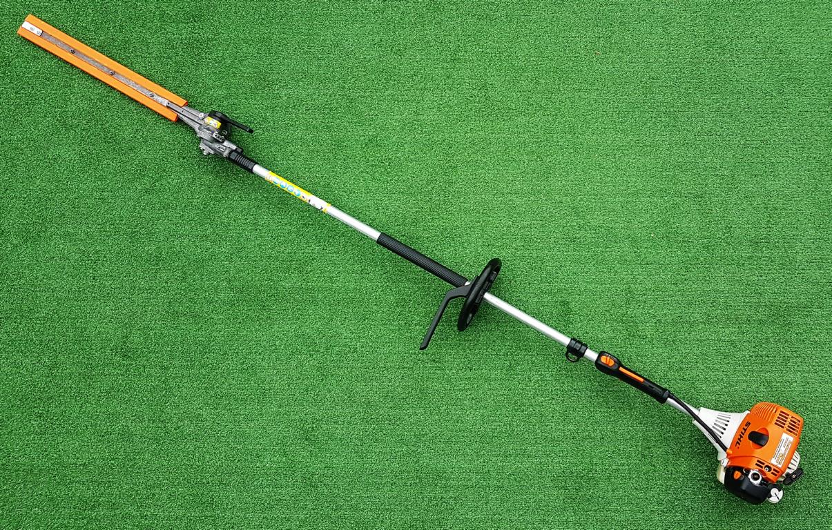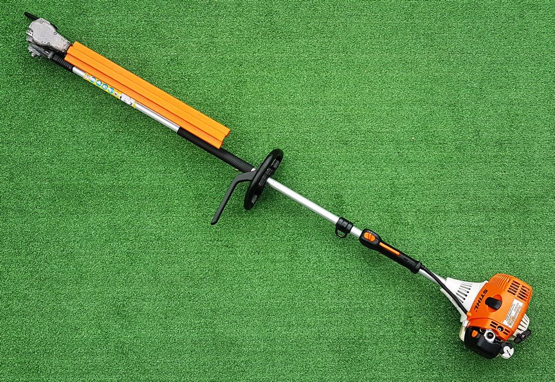 Starker Heckenschneider in der Langversion mit umweltschonendem 4-MIX®-Motor und 135° stufenweise verstellbarem Messerbalken. Tankt Benzin-Öl-Gemisch. Angenehmes Klangbild. Flexibles Schneiden sehr hoher und überbreiter Hecken mit sicherem Stand vom Boden aus auch ohne Gerüst oder Arbeitsplattformen. Gesamtlänge 2,5 m.