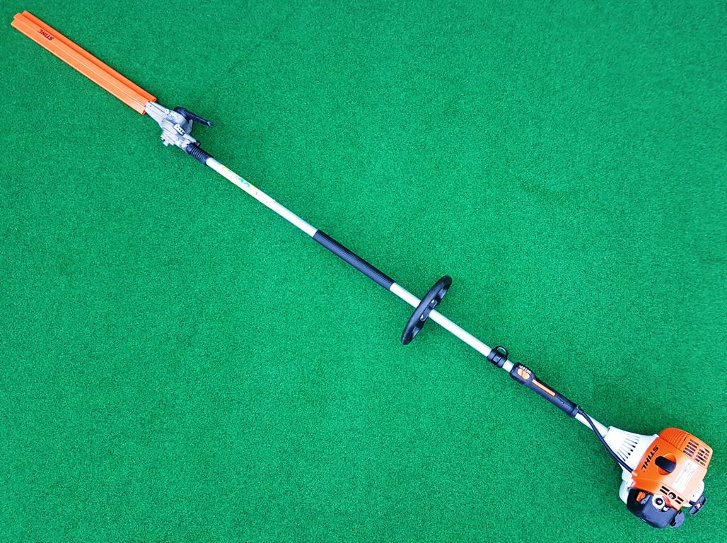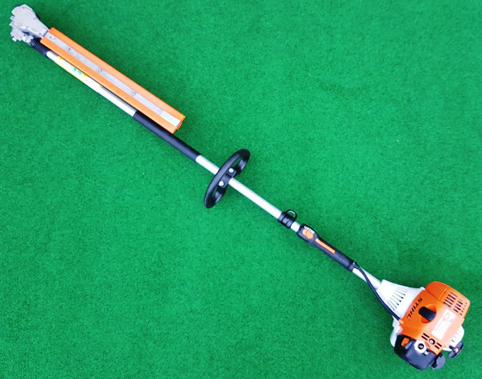 Starker Heckenschneider in der Langversion mit umweltschonendem 4-MIX®-Motor und 135° stufenweise verstellbarem Messerbalken. Tankt Benzin-Öl-Gemisch. Angenehmes Klangbild. Flexibles Schneiden sehr hoher und überbreiter Hecken mit sicherem Stand vom Boden aus auch ohne Gerüst oder Arbeitsplattformen. Gesamtlänge 2,5 m.