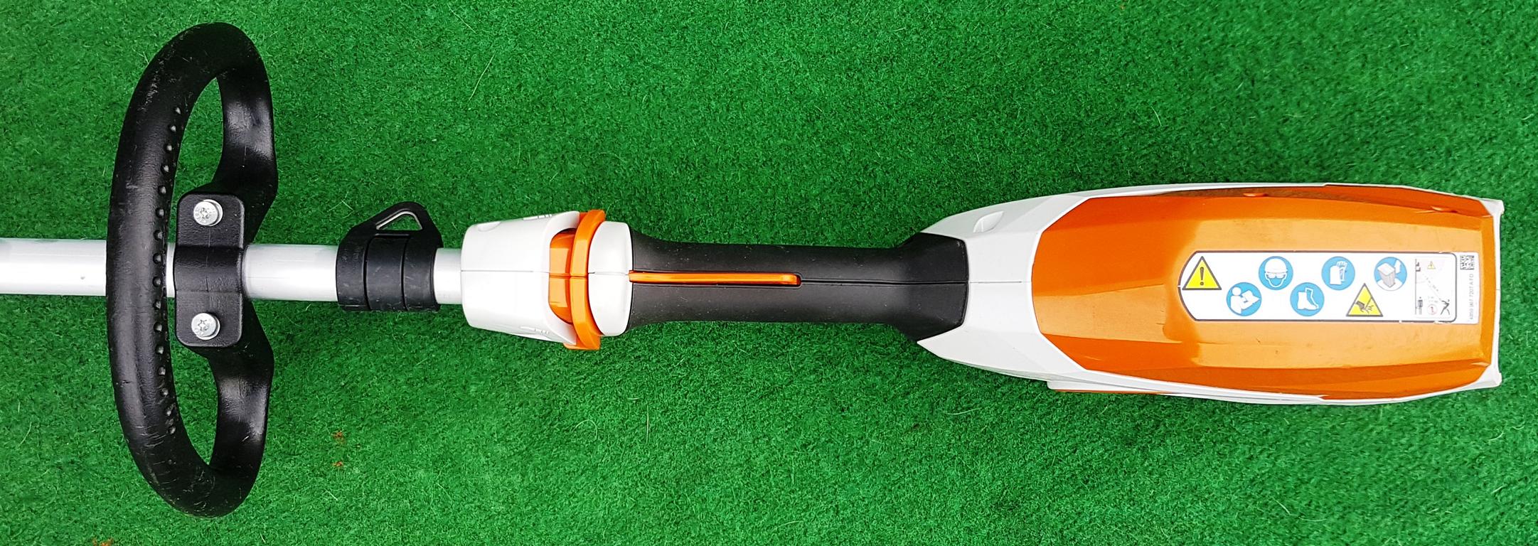 Der Messerbalken lässt sich um bis zu 115° (-45° bis +70°) verstellen. So können Sie den verstellbaren Messerbalken für einen einfachen Transport parallel zum Schaft klappen. Der Bediengriff ist besonders ergonomisch konstruiert und für Rechts- wie auch Linkshänder geeignet. Zudem verfügt der Bediengriff über einen selbstrückstellenden Sperrhebel. Um bei Engstellen möglichst beweglich zu bleiben, ist der Akku Heckenschneider HLA 66 mit einem Rundgriff ausgestattet.