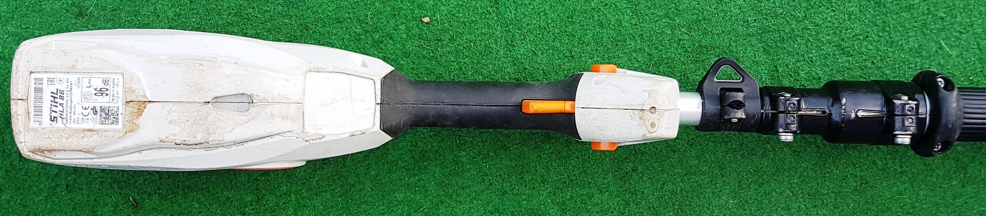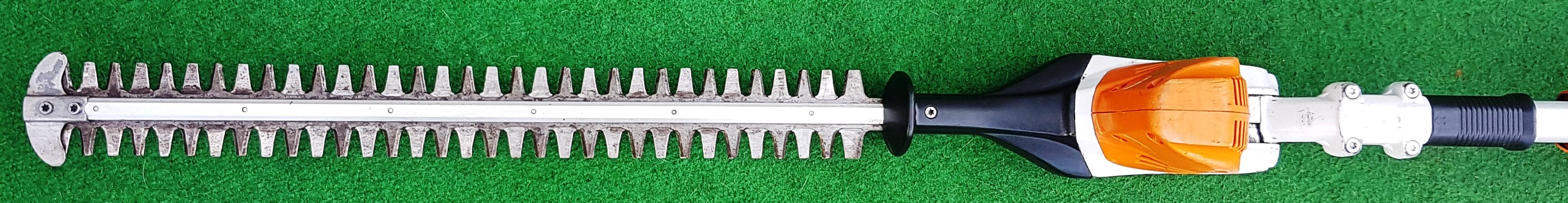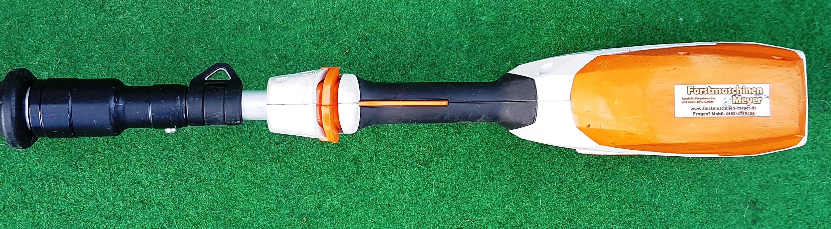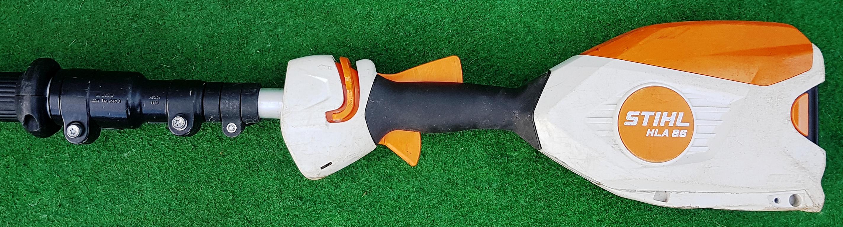 Akku-Heckenschneider für den professionellen Einsatz mit hoher Reichweite durch Teleskopschaft. Stufenlose Drehzahl, ideal einstellbar für Kopf-, Seiten- und Bodenschnitt, um 115° schwenkbarer Messerbalken, doppelseitig geschliffene Messer, werkzeuglose Schaftlängeneinstellung durch Schnellspannhebel, Transportlänge 180 cm, Gesamtlänge 260 bis 330 cm.