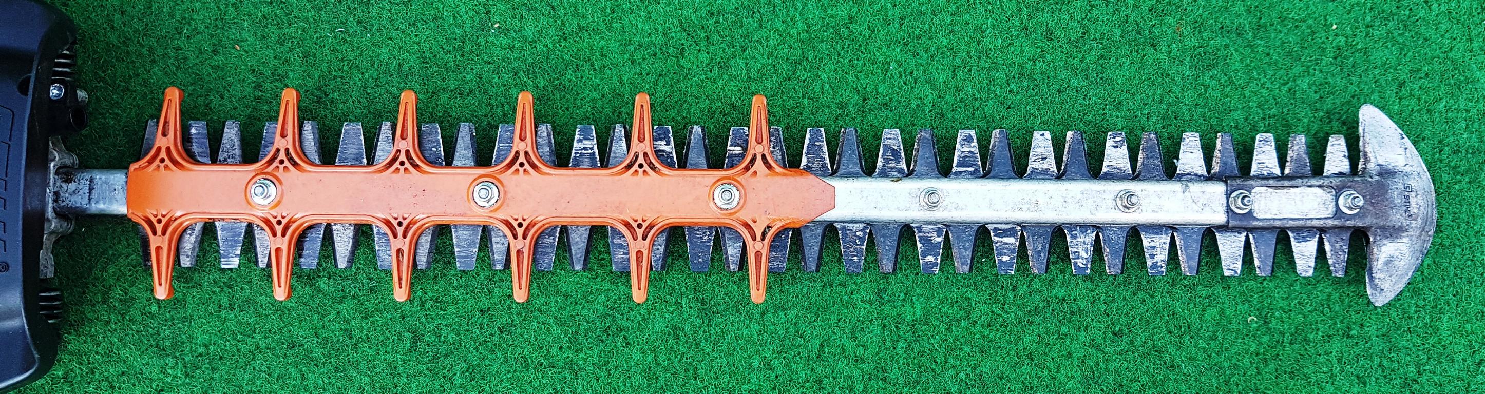 Professionelle Heckenschere mit STIHL 2-MIX-Motor in Rückschnittausführung. Doppelseitiges Schneidmesser. Sowohl für den senkrechten wie waagrechten Schnitt geeignet. Geringes Gewicht und niedrige Vibrationsbelastungen. Speziell abgestimmtes Getriebe mit bis zu 3.100 Hüben/Minute für niedrige Messergeschwindigkeit und damit besonders geeignet für einen kräftigen Schnitt.