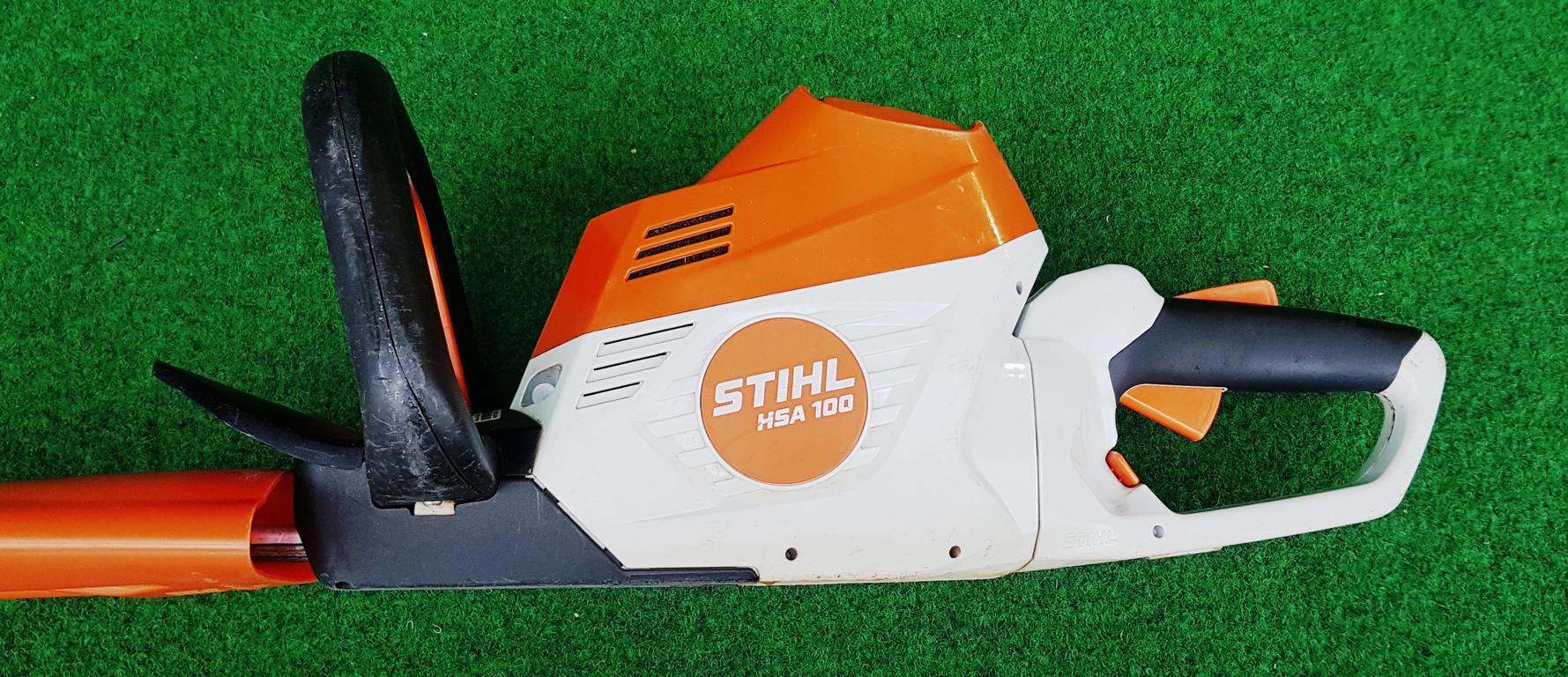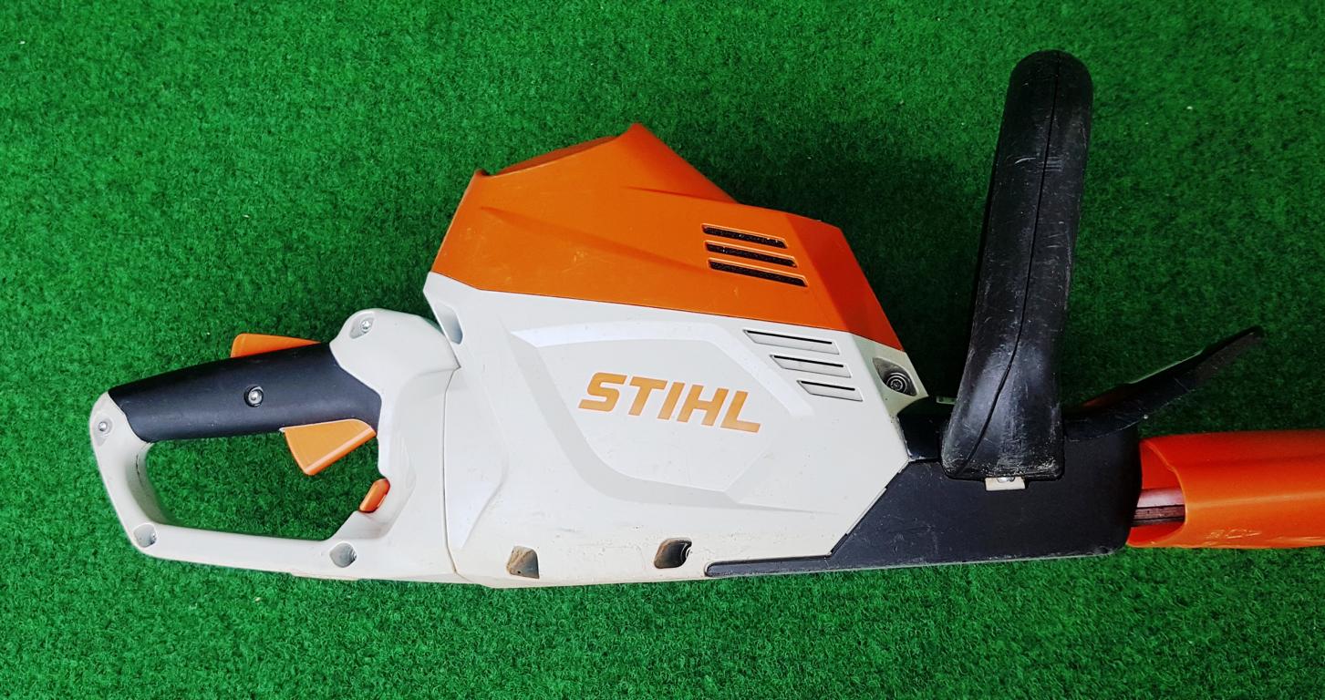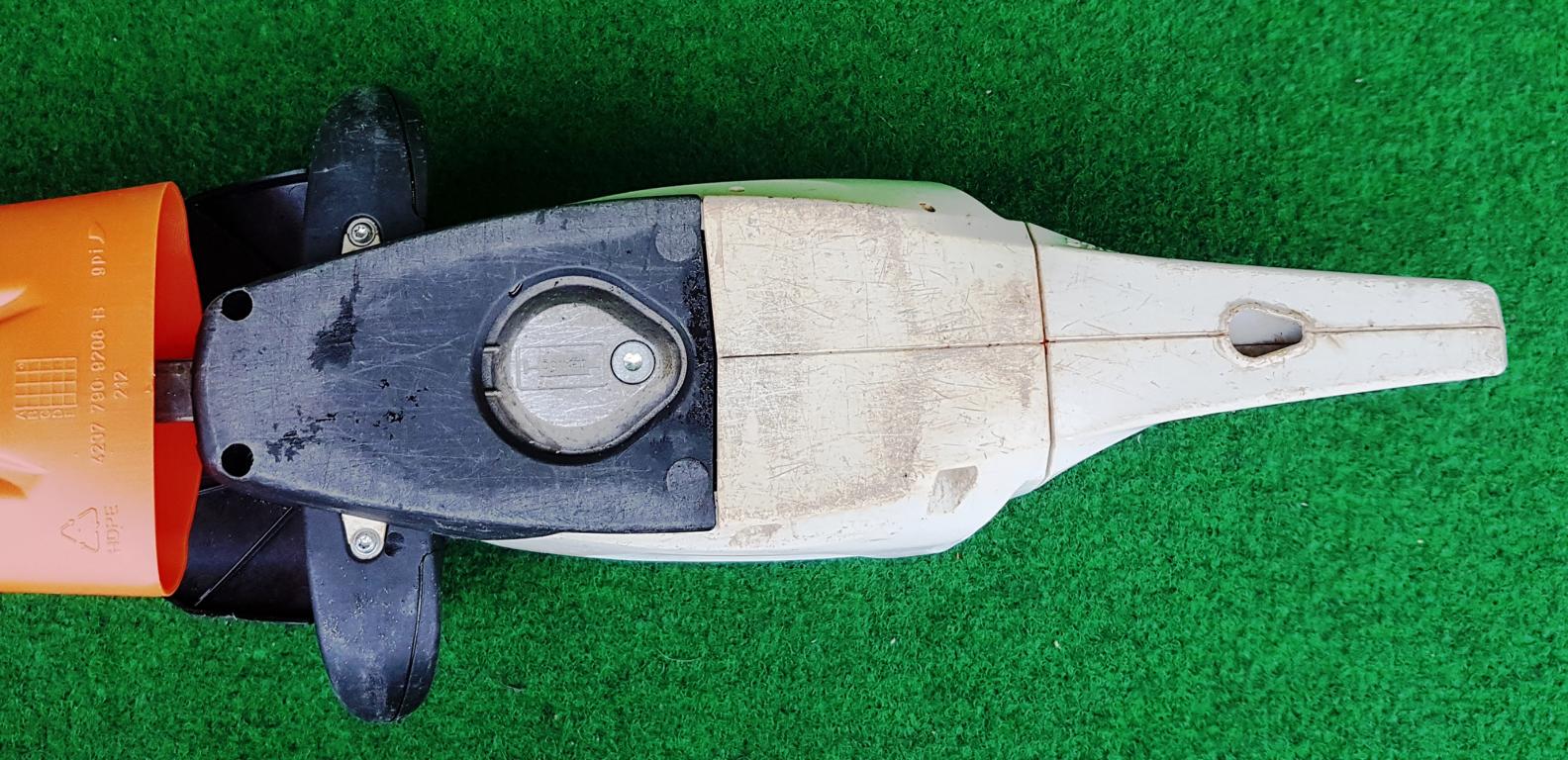 Ein aufgeschraubter Schnittschutz reduziert das Risiko des Kontakts mit den Schneidmessern und unterstützt so das sichere Arbeiten mit der HSA 100 von STIHL. Beim Schneiden in Bodennähe oder an Mauern wird die Schneidgarnitur durch den aufgeschraubten Führungsschutz gegen Verschleiß geschützt.