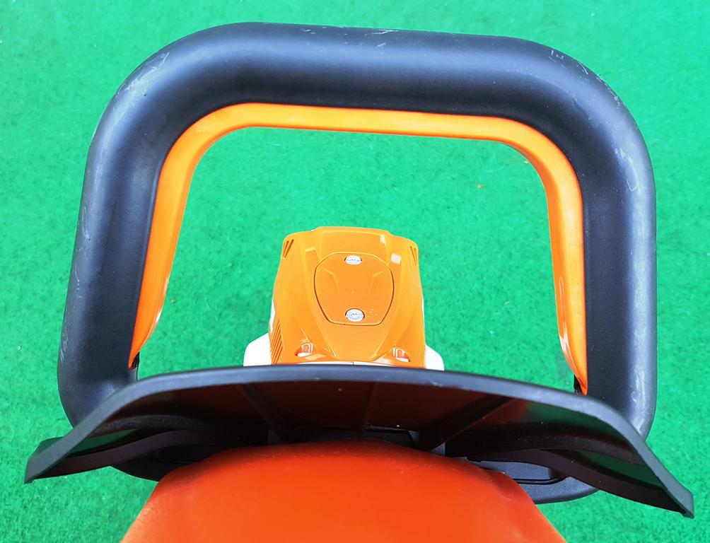 VERHINDERT BESCHÄDIGUNGEN. Der Führungsschutz verhindert Beschädigungen der Messer. Zudem erleichtert der Führungsschutz das Schneiden in Bodennähe oder entlang von Mauern.
