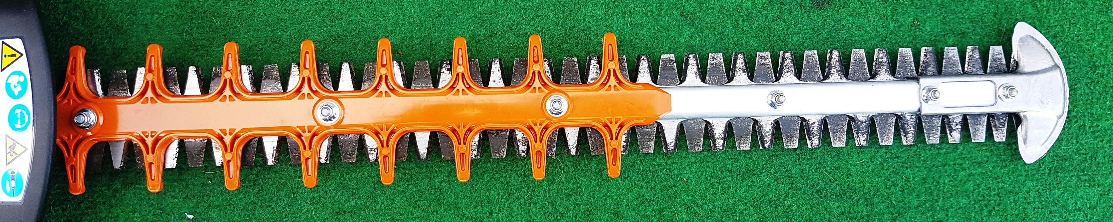 FÜR EINEN OPTIMALEN HECKENSCHNITT. Mit dem doppelseitigen Schneidmesser gelingt Ihnen sowohl senkrecht, waagerecht als auch in Ecken ein optimaler Schnitt Ihrer Hecke. Selbst bei dickerem Geäst können Sie dank der doppelseitig geschliffenen Messer Ihre Hecke effektiv trimmen bzw. rückschneiden