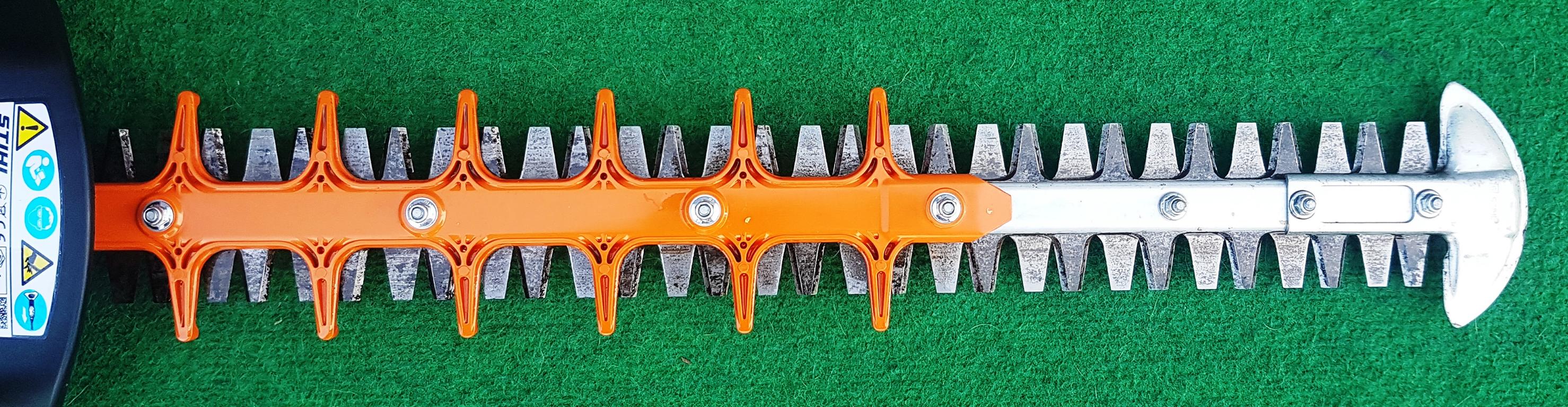 STIHL Heckenscheren mit doppelseitigem Schneidmesser schneiden sowohl bei senkrechten wie waagrechten Schnitten perfekt ab. Durch den Einsatz beider Messerseiten ermöglichen sie auch einen optimalen Schnitt in Ecken.