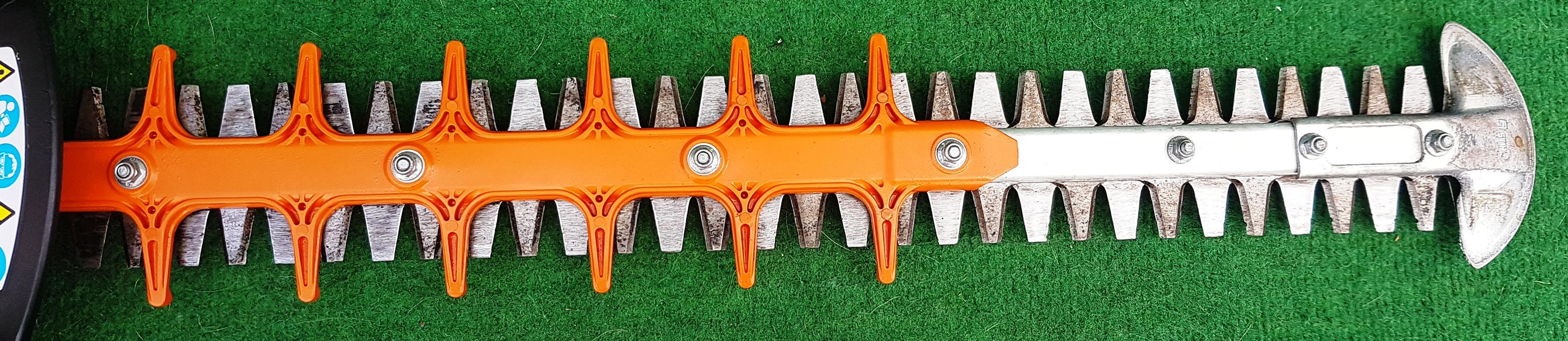 Schützt die Spitze der Heckenscherenmesser vor Verschleiß und erleichtert das wand- und bodennahe Schneiden.