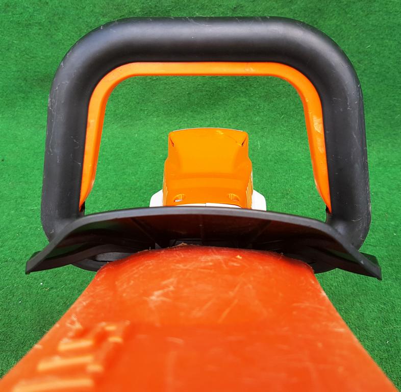 Die Messerhubzahl ist 3-stufig einstellbar. So steht für jede Arbeitssituation die optimale Messergeschwindigkeit zur Verfügung. Die Einstellung der Messerhubzahl erfolgt über das Bedien-Cockpit auf dem Drehgriff. Das Bediencockpit dreht sich mit, unabhängig von der gewählten Drehgriffeinstellung ist der Taster stets optimal erreichbar.