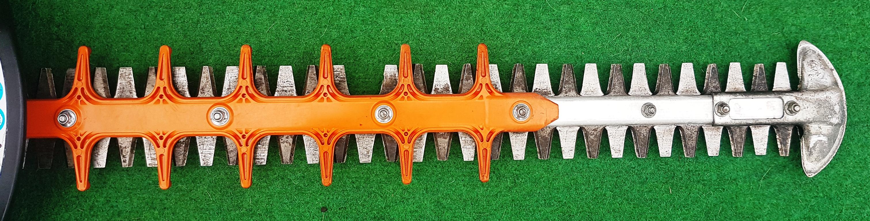 Schützt die Spitze der Heckenscherenmesser vor Verschleiß und erleichtert das wand- und bodennahe Schneiden.