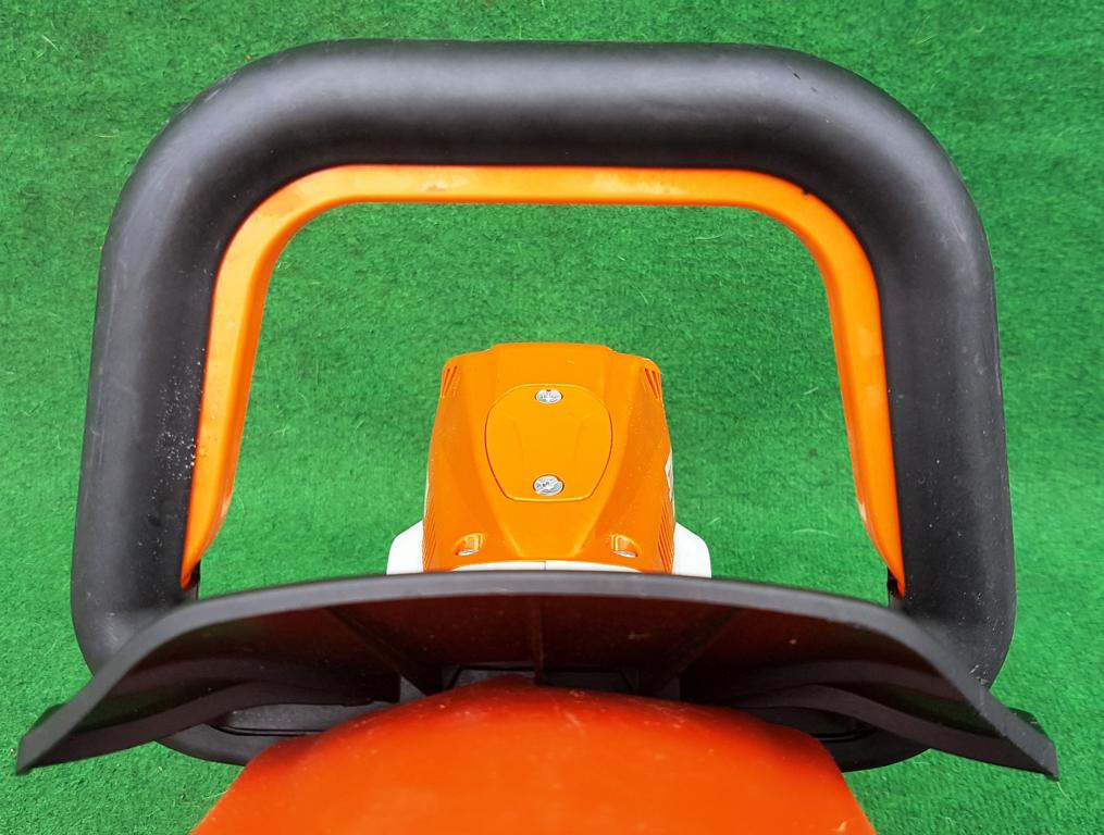 Die Messerhubzahl ist 3-stufig einstellbar. So steht für jede Arbeitssituation die optimale Messergeschwindigkeit zur Verfügung. Die Einstellung der Messerhubzahl erfolgt über das Bedien-Cockpit auf dem Drehgriff. Das Bediencockpit dreht sich mit, unabhängig von der gewählten Drehgriffeinstellung ist der Taster stets optimal erreichbar.