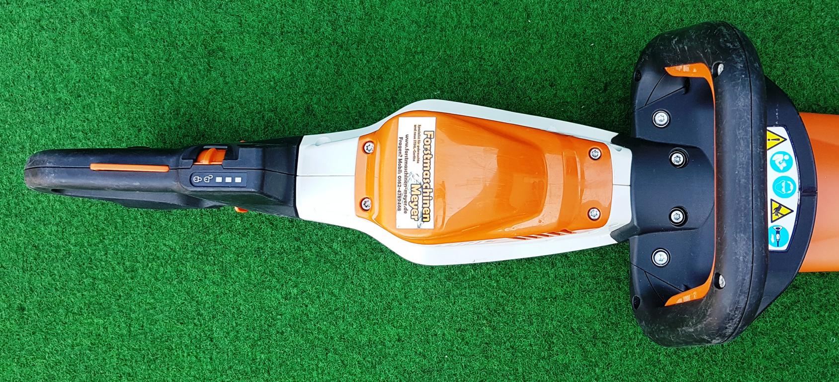 Extrem leistungsstarke, robuste Profi-Akku-Heckenschere mit niedriger Messergeschwindigkeit für kräftige Schnitte. Konstante Hubzahl auch bei extremer Last im harten Rückschnitt, drehbarer Multifunktionsgriff mit dreistufig einstellbarer Hubzahl. Doppelseitig geschliffene Messer in Rückschnittausführung, aufgeschraubter Schnitt- und Führungsschutz. Schnittlänge 60 cm.