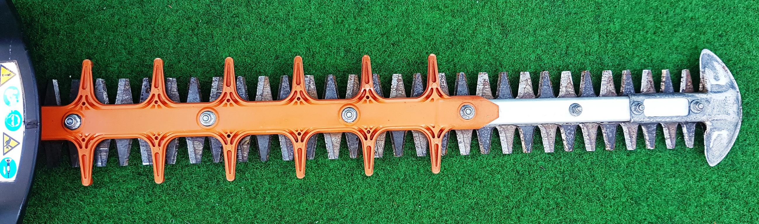 Schützt die Spitze der Heckenscherenmesser vor Verschleiß und erleichtert das wand- und bodennahe Schneiden.