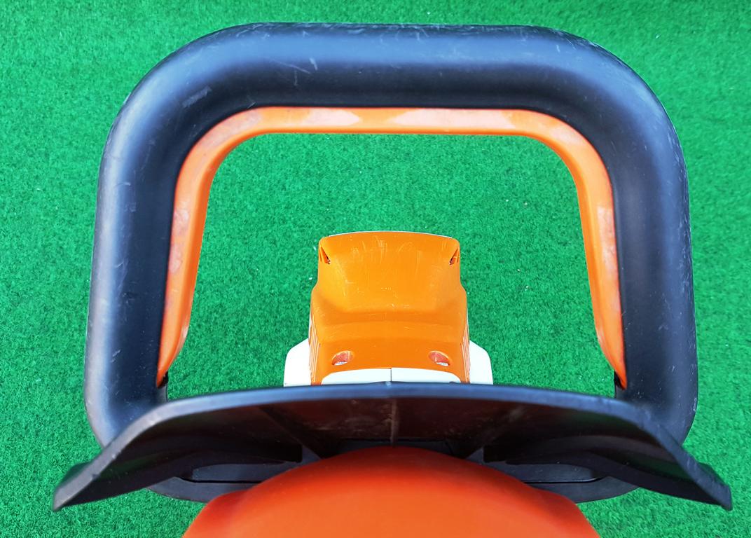 Die Messerhubzahl ist 3-stufig einstellbar. So steht für jede Arbeitssituation die optimale Messergeschwindigkeit zur Verfügung. Die Einstellung der Messerhubzahl erfolgt über das Bedien-Cockpit auf dem Drehgriff. Das Bediencockpit dreht sich mit, unabhängig von der gewählten Drehgriffeinstellung ist der Taster stets optimal erreichbar.