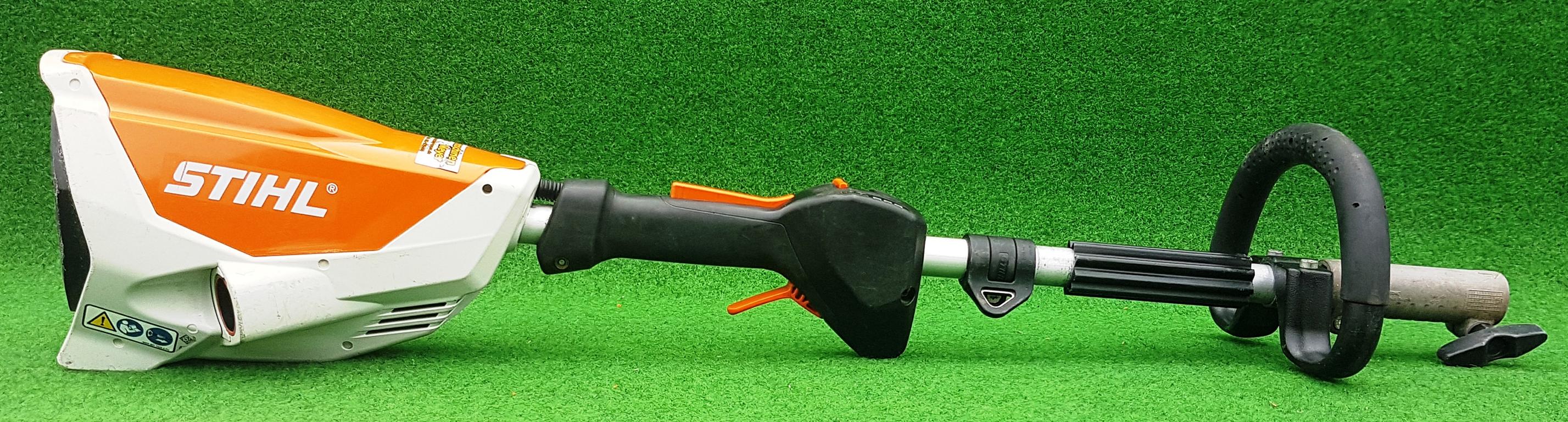 Leistungsstarker Akku-KombiMotor mit hohem Drehmoment bei geringem Gewicht. Drei Leistungsstufen für energieeffizientes und geräuscharmes Arbeiten bei allen Anwendungen, Traggurt, Gewicht 3,2 kg.