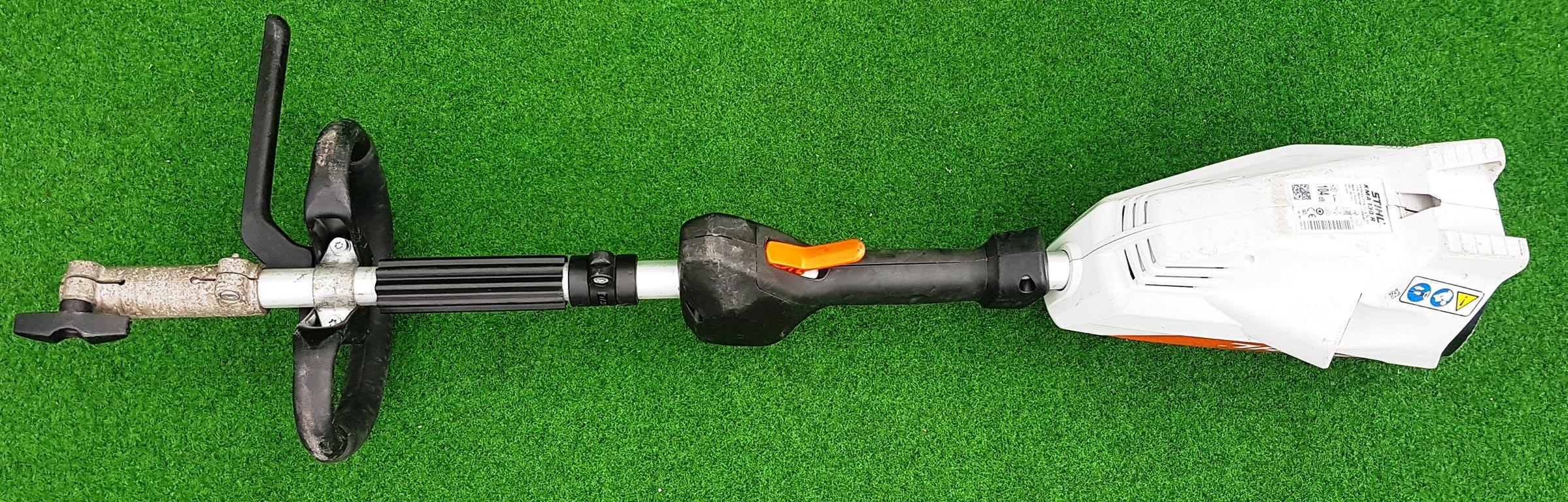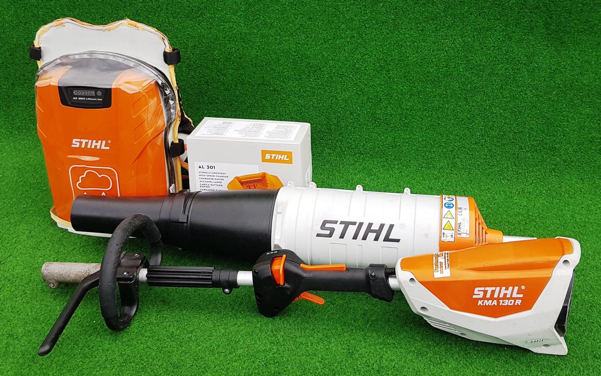Leistungsstarker Akku-KombiMotor mit hohem Drehmoment bei geringem Gewicht. Drei Leistungsstufen für energieeffizientes und geräuscharmes Arbeiten bei allen Anwendungen, Traggurt, Gewicht 3,2 kg.