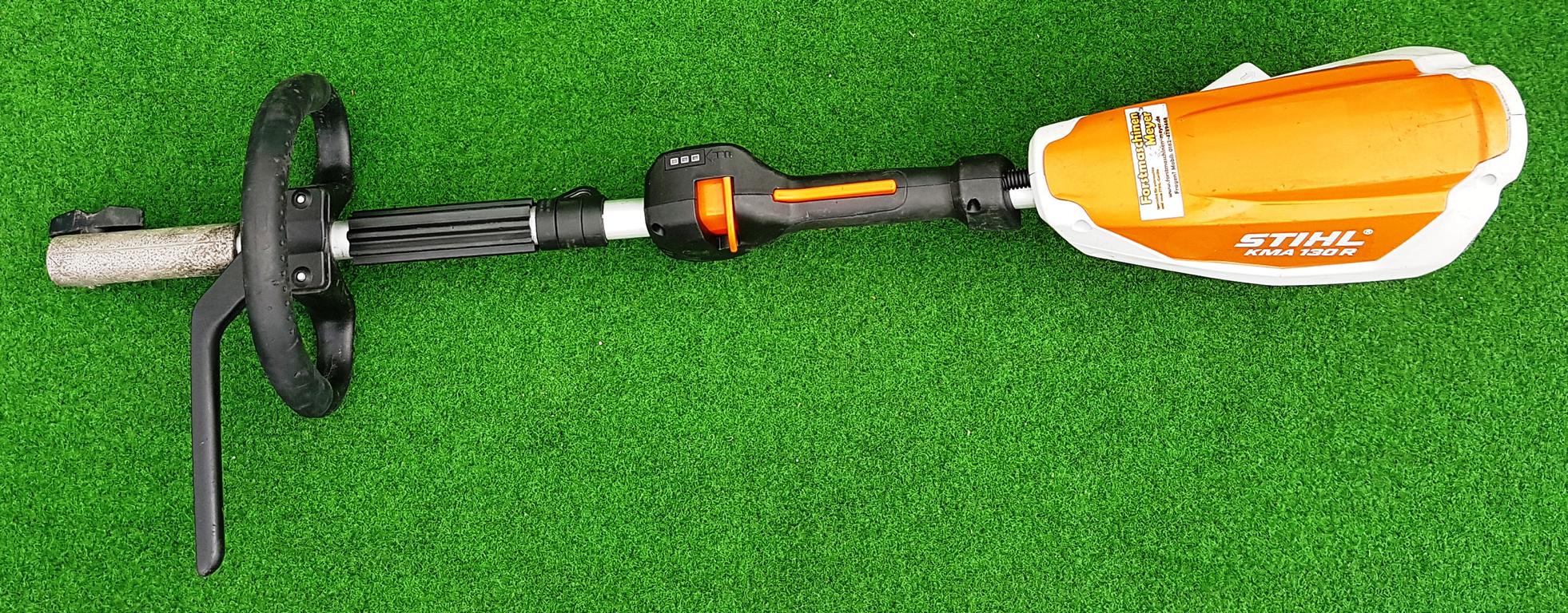 Der Schrittbegrenzer beim Rundumgriff sorgt dafür, dass Füße und Beine bei der Arbeit Messern oder Mähköpfen nicht zu nahe kommen.