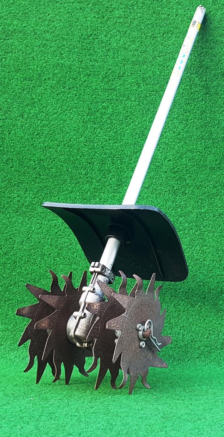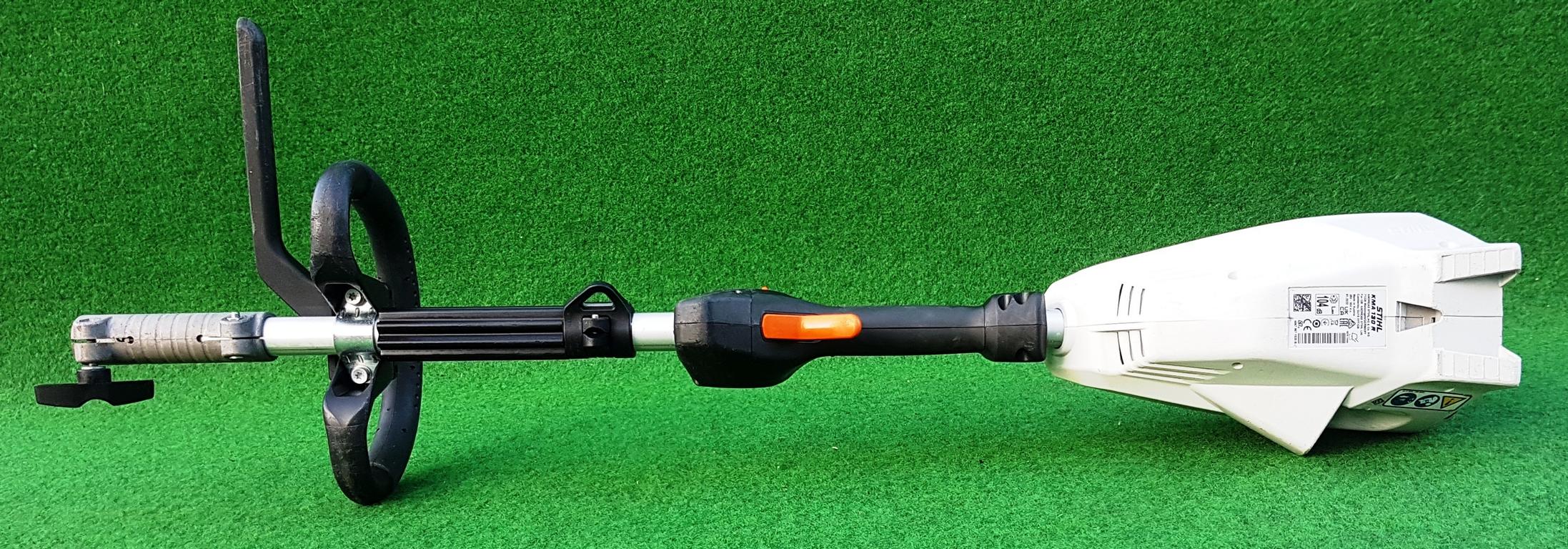 Der Schrittbegrenzer beim Rundumgriff sorgt dafür, dass Füße und Beine bei der Arbeit Messern oder Mähköpfen nicht zu nahe kommen.