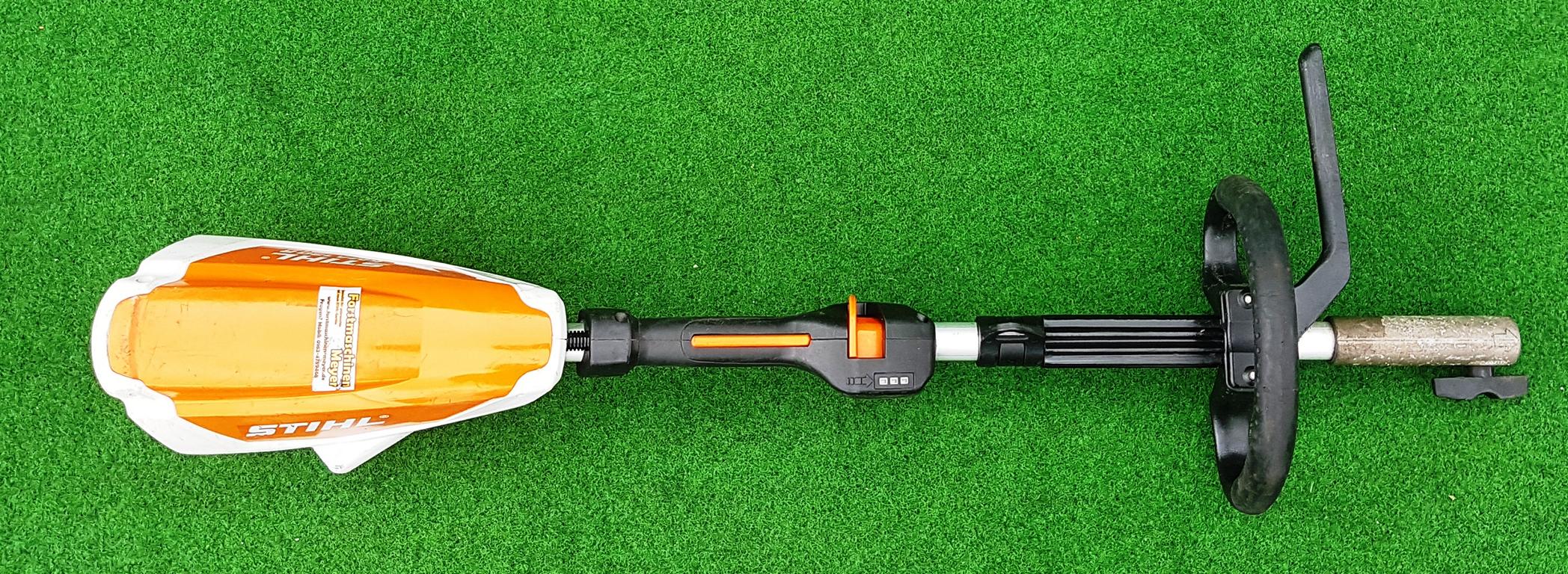 Der Schrittbegrenzer beim Rundumgriff sorgt dafür, dass Füße und Beine bei der Arbeit Messern oder Mähköpfen nicht zu nahe kommen.