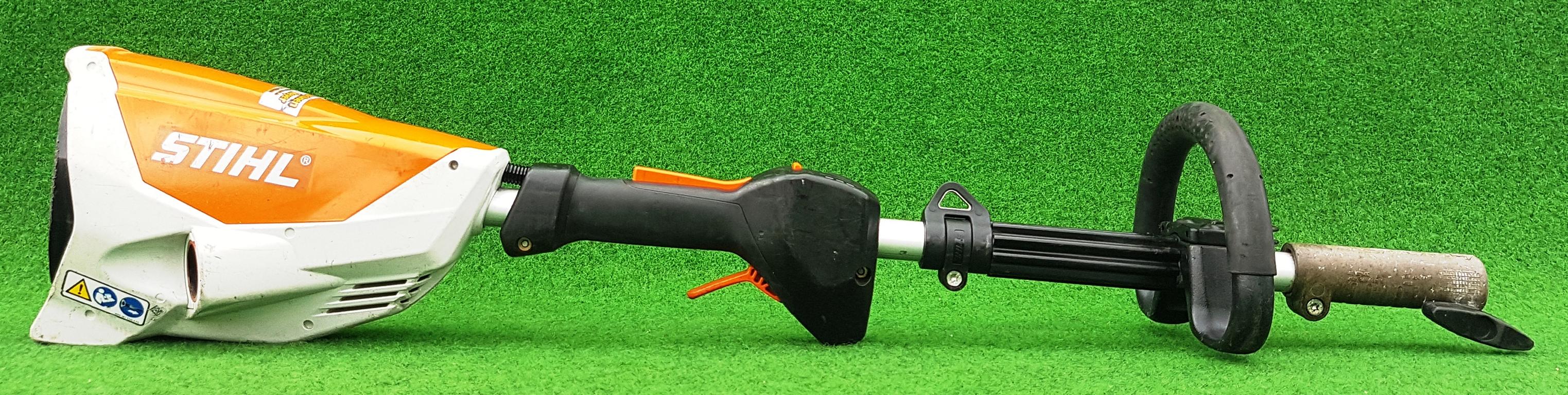 Leistungsstarker Akku-KombiMotor mit hohem Drehmoment bei geringem Gewicht. Drei Leistungsstufen für energieeffizientes und geräuscharmes Arbeiten bei allen Anwendungen, Traggurt, Gewicht 3,2 kg.
