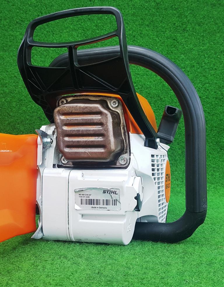 Die kraftvolle Motorsäge MS 400 C-M ist die weltweit erste Motorsäge mit einem Magnesiumkolben. In Verbindung mit der konsequenten Leichtbauweise führt dies zu einem ausgesprochen niedrigem Leistungsgewicht von unter 1,45 kg/kW. In der MS 400 C-M kommt der von STIHL gänzlich neu entwickelte 67 cm³-Motor mit einer Leistung von 4,0 kW erstmals zum Einsatz.