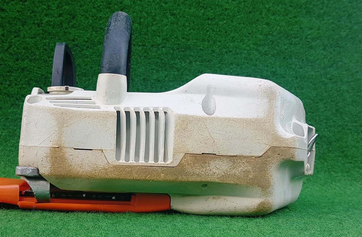 Zusätzliches Bremssystem für mehr Sicherheit – exklusiv von STIHL. Die Sägekette stoppt nicht nur bei ausreichend starkem Rückschlag oder aktivem Betätigen des vorderen Handschutzes, sondern auch beim Loslassen des hinteren Handgriffs. Das Nachlaufen der Kette wird in Sekundenschnelle gestoppt und schützt den Anwender.