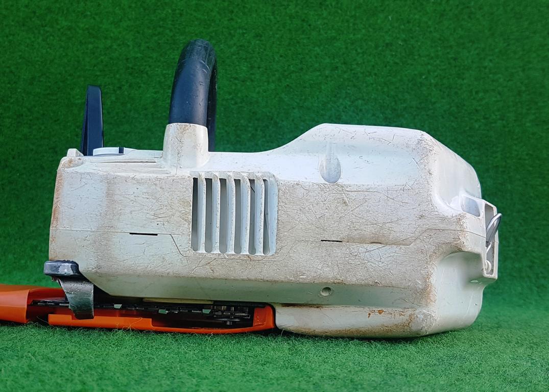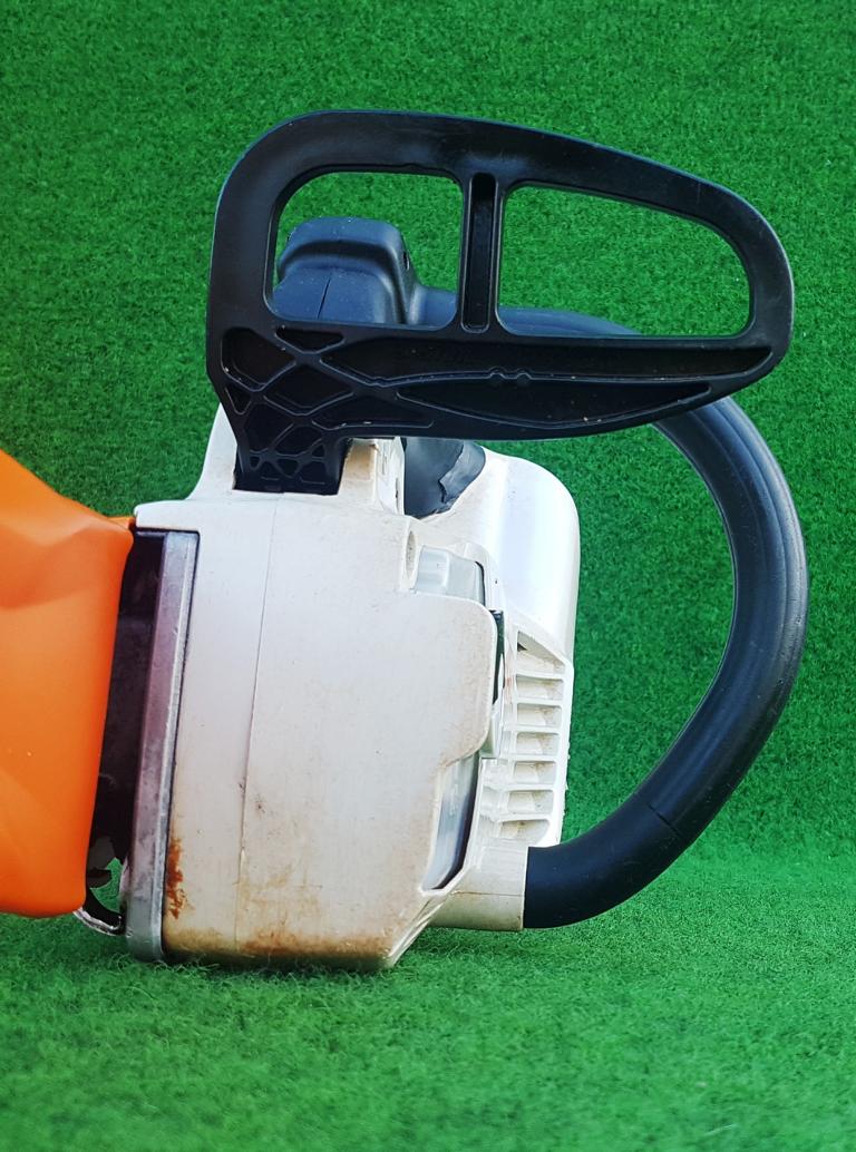 Zusätzliches Bremssystem für mehr Sicherheit – exklusiv von STIHL. Die Sägekette stoppt nicht nur bei ausreichend starkem Rückschlag oder aktivem Betätigen des vorderen Handschutzes, sondern auch beim Loslassen des hinteren Handgriffs. Das Nachlaufen der Kette wird in Sekundenschnelle gestoppt und schützt den Anwender.