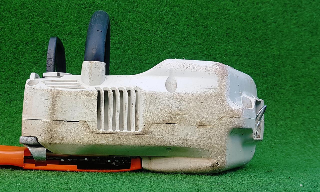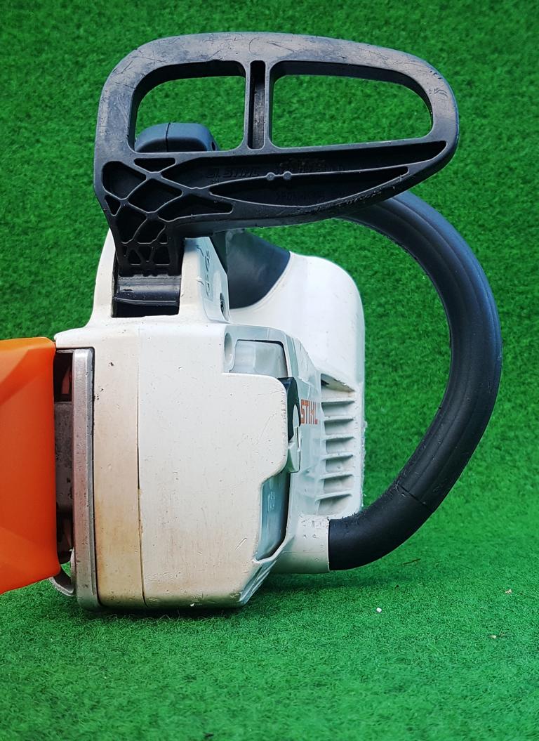 Zusätzliches Bremssystem für mehr Sicherheit – exklusiv von STIHL. Die Sägekette stoppt nicht nur bei ausreichend starkem Rückschlag oder aktivem Betätigen des vorderen Handschutzes, sondern auch beim Loslassen des hinteren Handgriffs. Das Nachlaufen der Kette wird in Sekundenschnelle gestoppt und schützt den Anwender.