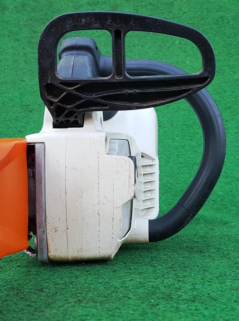 Zusätzliches Bremssystem für mehr Sicherheit – exklusiv von STIHL. Die Sägekette stoppt nicht nur bei ausreichend starkem Rückschlag oder aktivem Betätigen des vorderen Handschutzes, sondern auch beim Loslassen des hinteren Handgriffs. Das Nachlaufen der Kette wird in Sekundenschnelle gestoppt und schützt den Anwender.