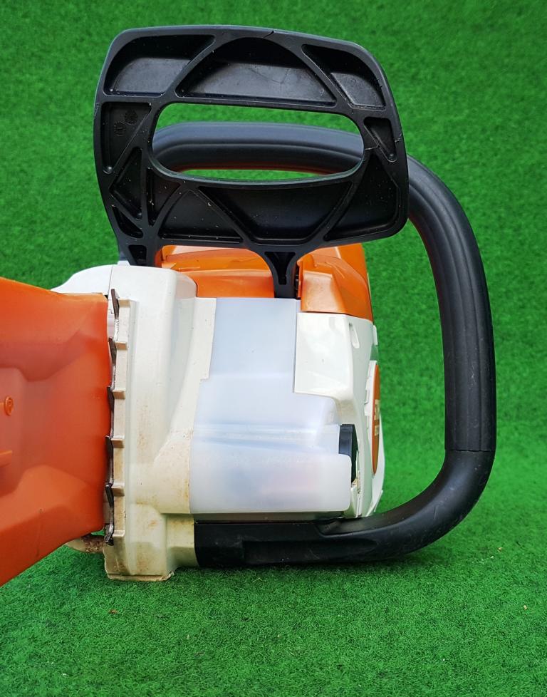 Durch den transparenten Öltank und den werkzeuglos bedienbaren Öltankverschluss lässt sich der Ölstand leicht und bequem prüfen.