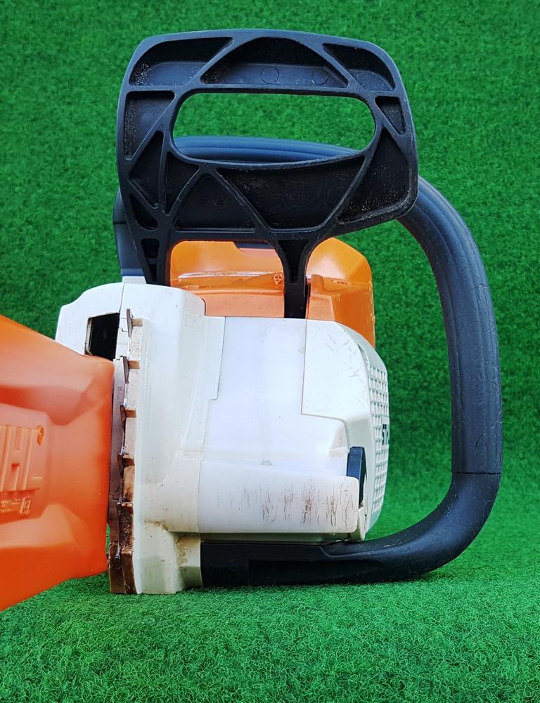 Zusätzliches Bremssystem für mehr Sicherheit – exklusiv von STIHL. Die Sägekette stoppt nicht nur bei ausreichend starkem Rückschlag oder aktivem Betätigen des vorderen Handschutzes, sondern auch beim Loslassen des hinteren Handgriffs. Das Nachlaufen der Kette wird in Sekundenschnelle gestoppt und schützt den Anwender.