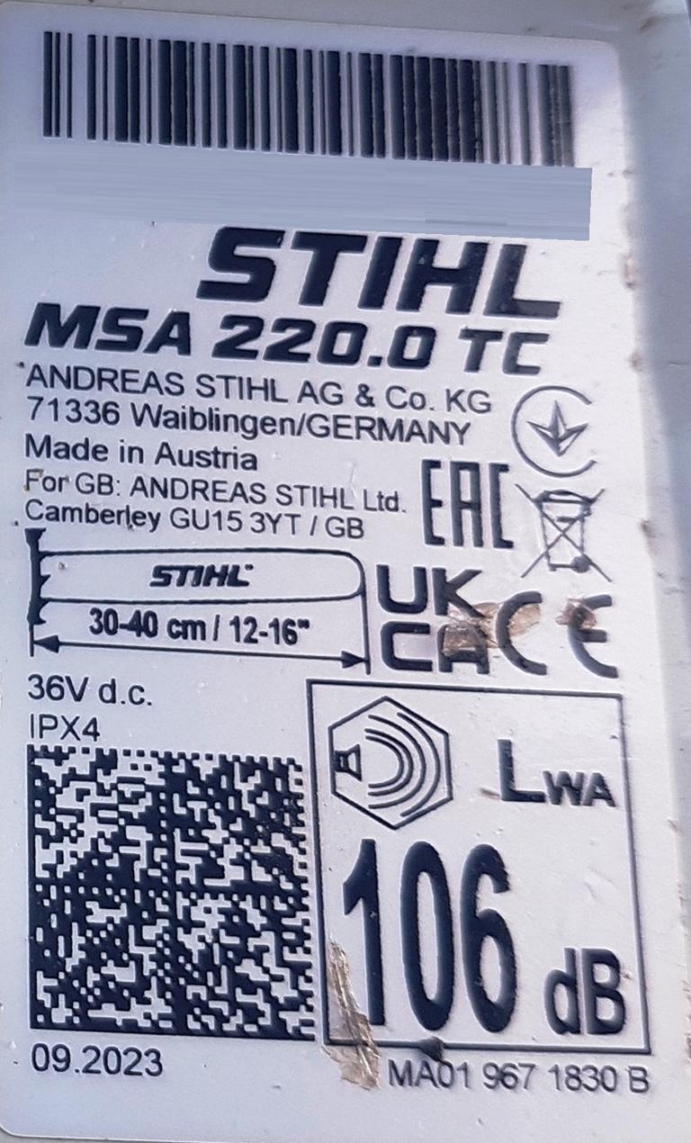 Alle Akku-Geräte innerhalb des STIHL AP-System sind für professionelle Anwender und für den täglichen Einsatz auch unter widrigen Wettereinflüssen konzipiert. Die Geräte verfügen zudem über einen in internen Prüfungen nachgewiesenen Schutz gegen allseitiges Spritzwasser. Bei der STIHL MSA 220 T wurde der bereits in internen Prüfungen nachgewiesene Spritzwasserschutz zusätzlich nach IPX4 Schutzart zertifiziert.