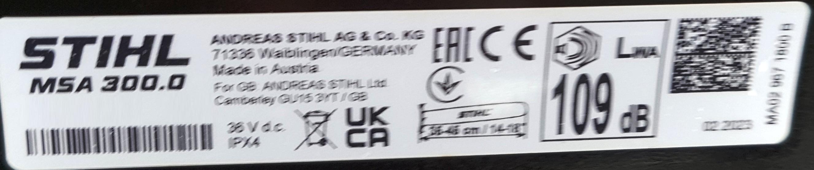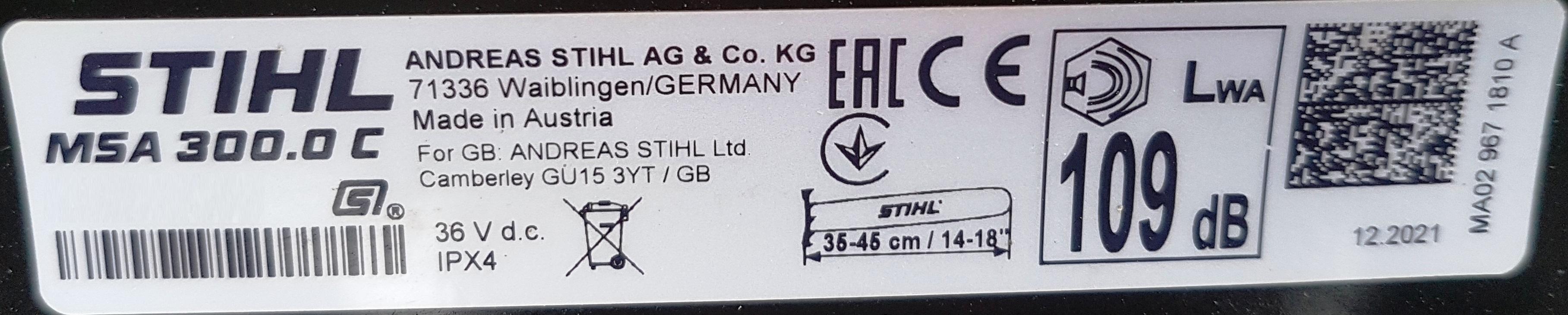 Alle Akku-Geräte innerhalb des STIHL AP Systems sind für professionelle Anwender und für den täglichen Einsatz auch unter widrigen Wettereinflüssen konzipiert. Die Geräte verfügen zudem über einen in internen Prüfungen nachgewiesenen Schutz gegen allseitiges Spritzwasser. Bei der STIHL MSA 300 wurde der bereits in internen Prüfungen nachgewiesene Spritzwasserschutz zusätzlich nach IPX4 Schutzart zertifiziert.