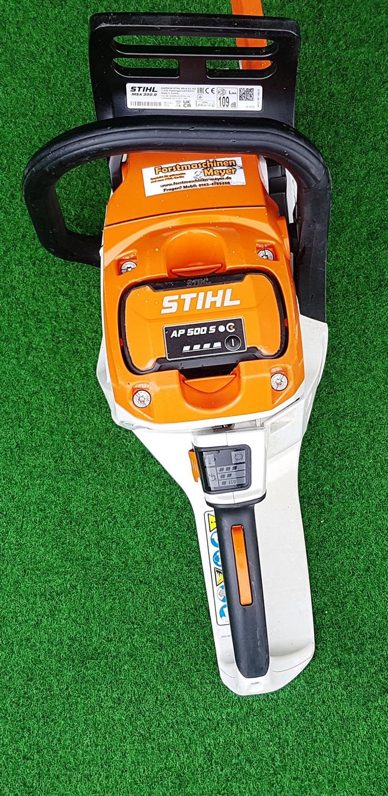 Hinweis: Diese Akku-Motorsäge können Sie nur mit einem Akku STIHL AP 500 S im vollen Funktionsumfang betreiben. Der Einsatz anderer STIHL Akkus gewährleistet weder den Einsatz aller Funktionen noch die maximal mögliche Sägeleistung.